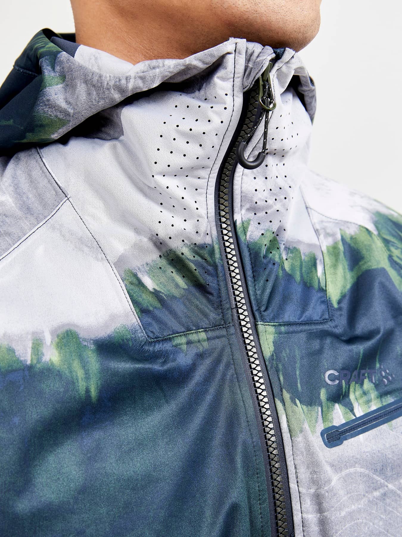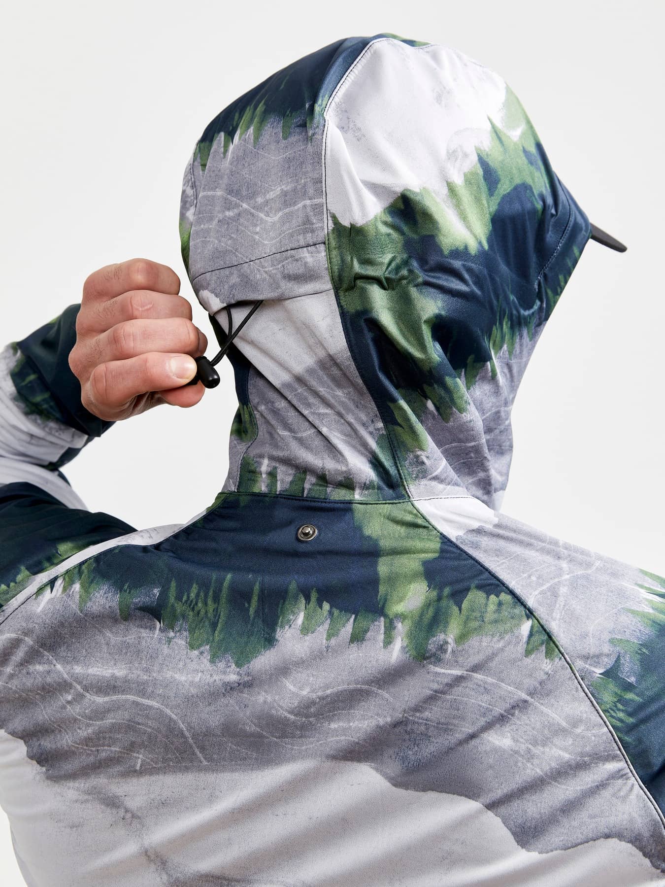 • Verstellbare Kapuze mit Fixierband