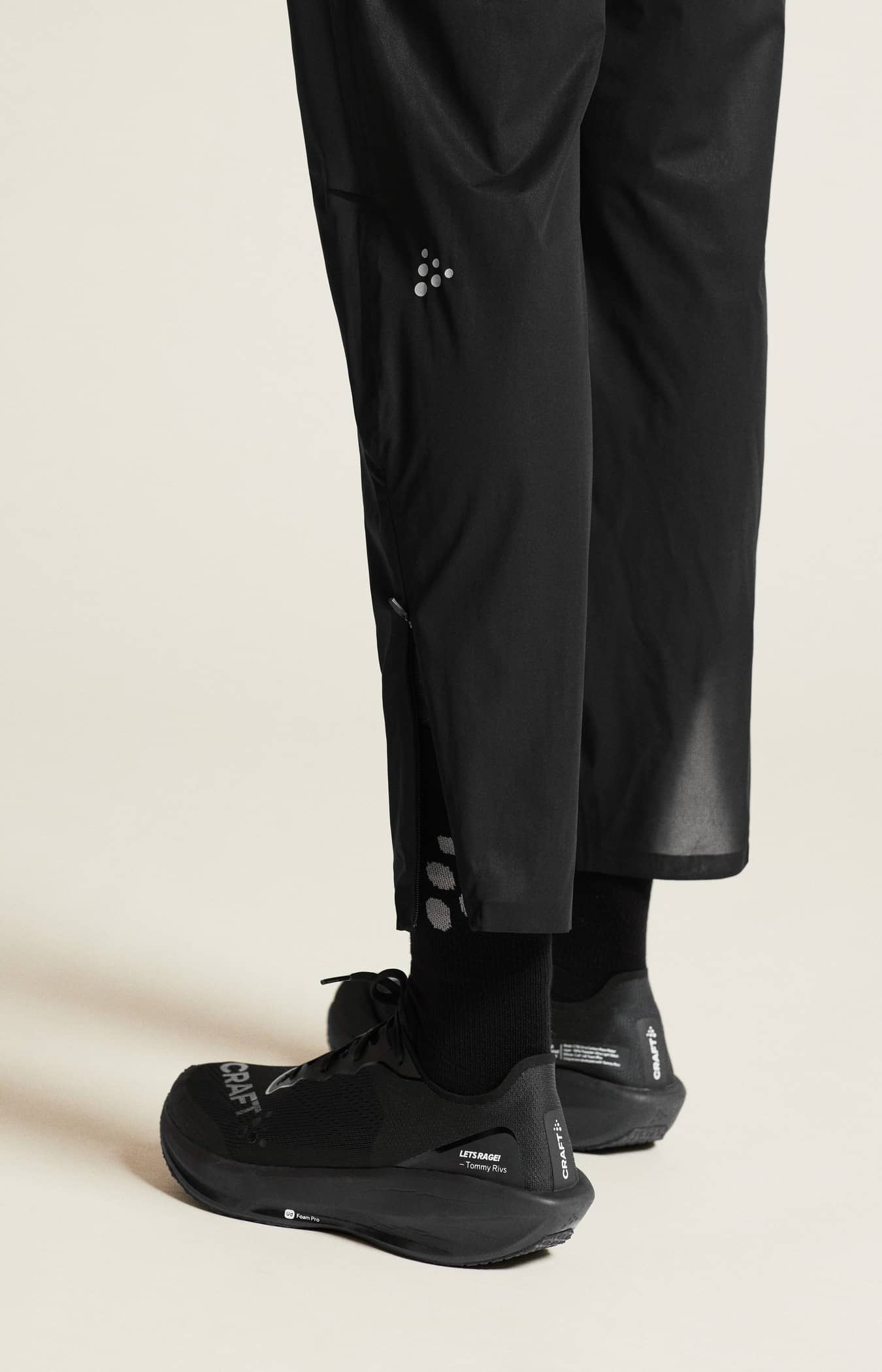 Diese leistungsstarke Hose besteht aus einem dünnen und elastischen 2-Lagen-Stoff, der außergewöhnlichen Wetterschutz bietet und gleichzeitig maximal atmungsaktiv ist. Ein leichtes und minimalistisches Design sorgt für große Bewegungsfreiheit und macht die Hose perfekt für hochintensive Workouts bei nassen Bedingungen. Außerdem verfügt die Hose über verklebte Nähte, einen verstellbaren Kordelzug in der Taille und einen Reißverschluss an den Beinabschlüssen für einfaches An- und Ausziehen.