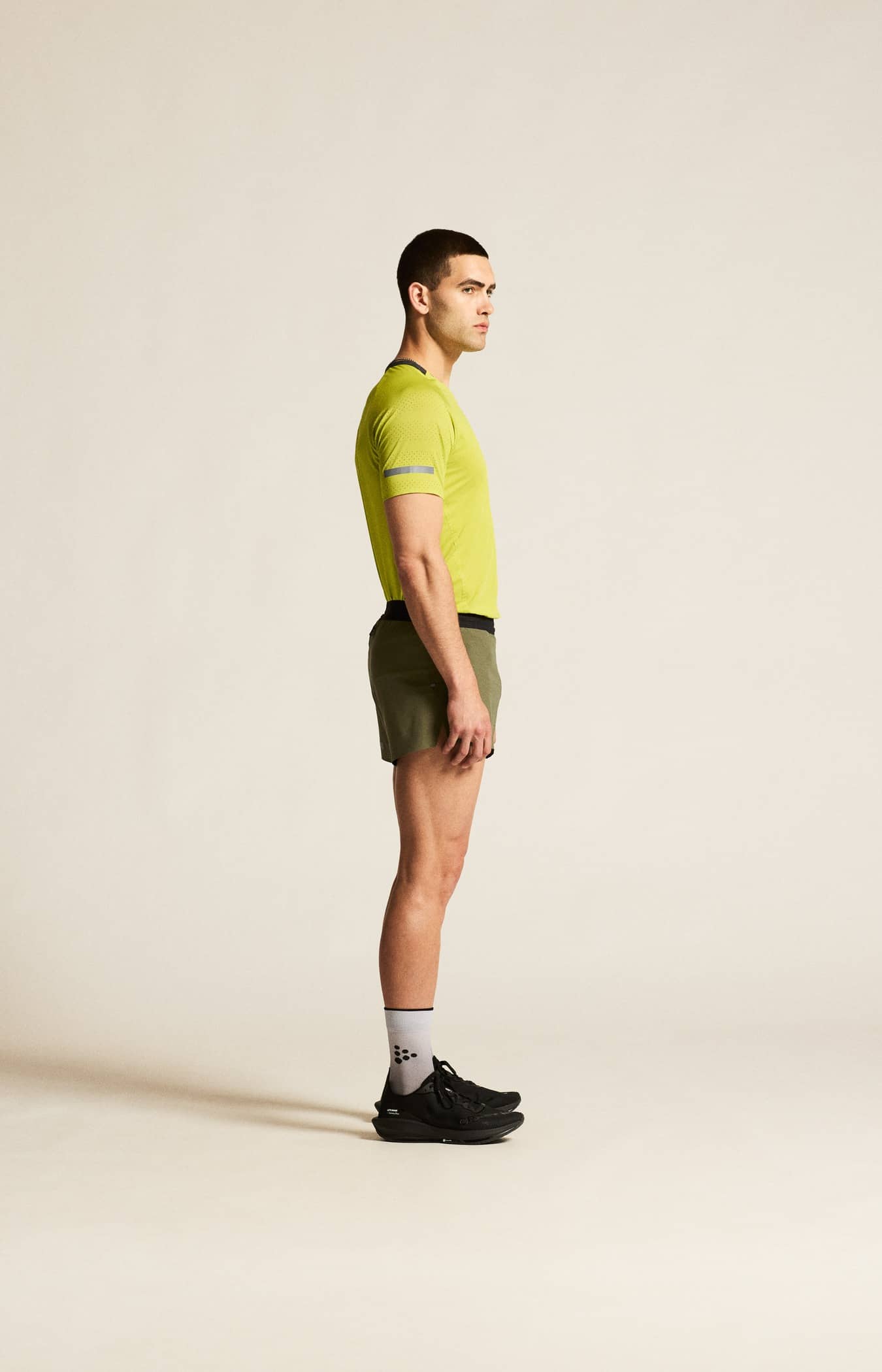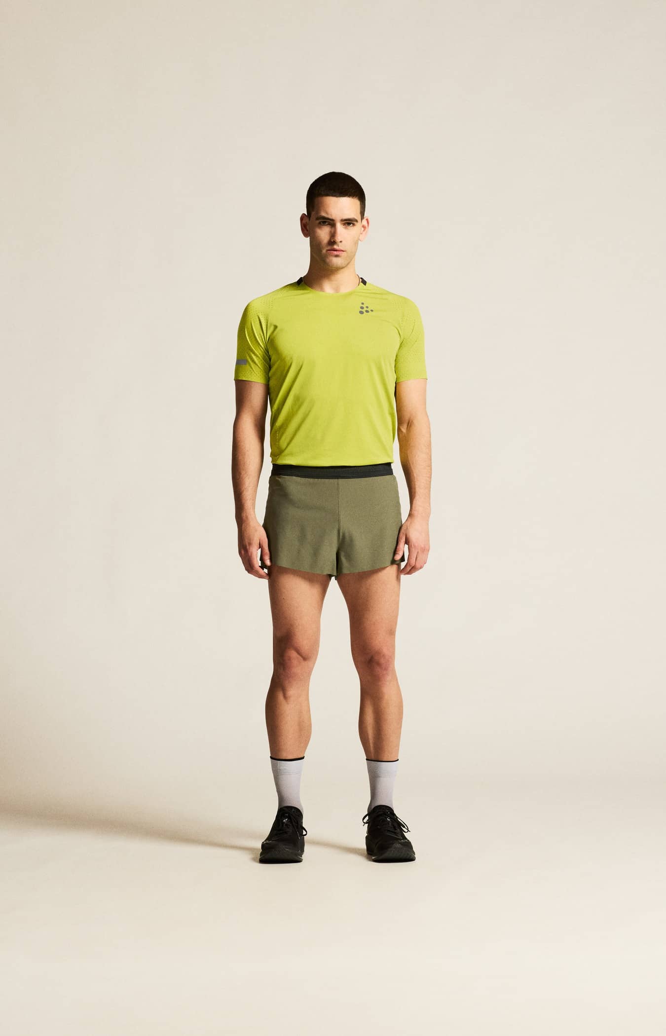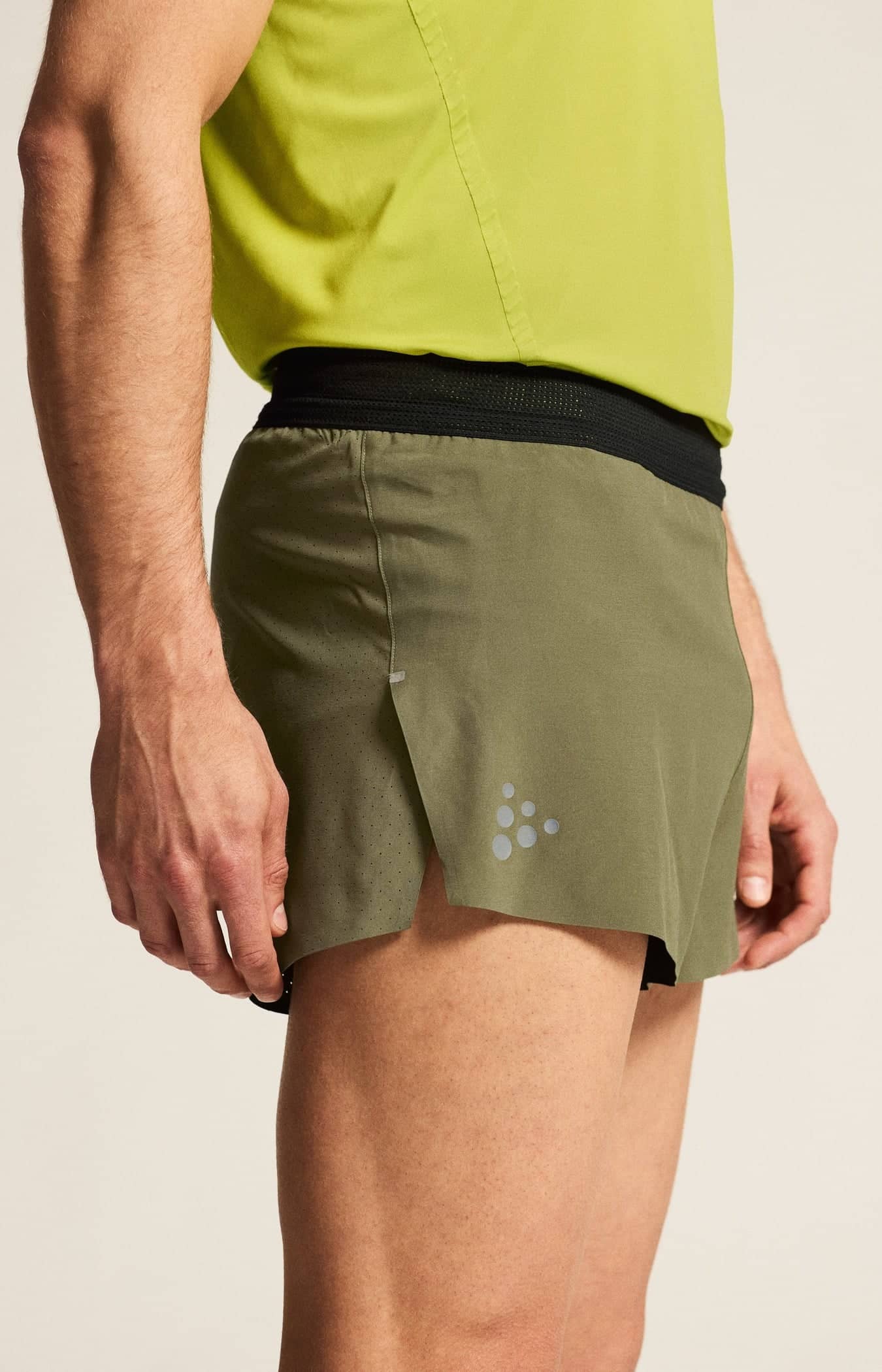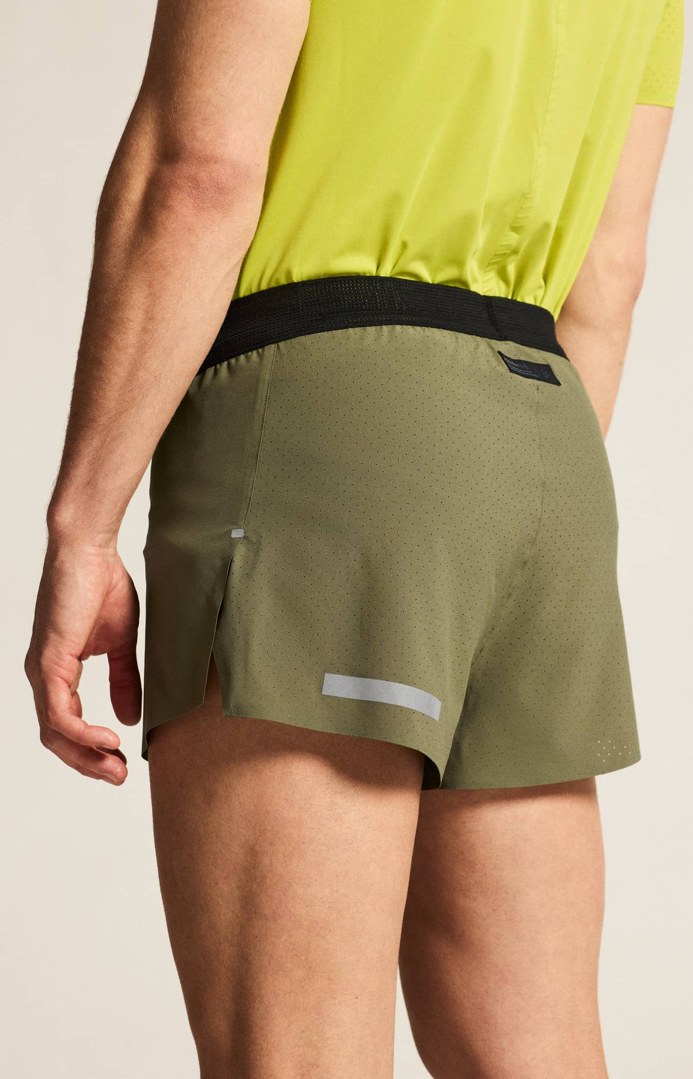 Diese technisch ausgereiften Laufshorts sind aus funktionellem Stretch-Polyester hergestellt und verfügen über einen Innenslip aus luftdurchlässigem Polyester-Mesh, der für hervorragende Kühlung und Feuchtigkeitstransport sorgt. Die Shorts verfügen außerdem über eine perforierte Rückenpartie, hohe Seitennahtschlitze, die für mehr Bewegungsfreiheit sorgen, und einen getapten Saum, der den Komfort erhöht.