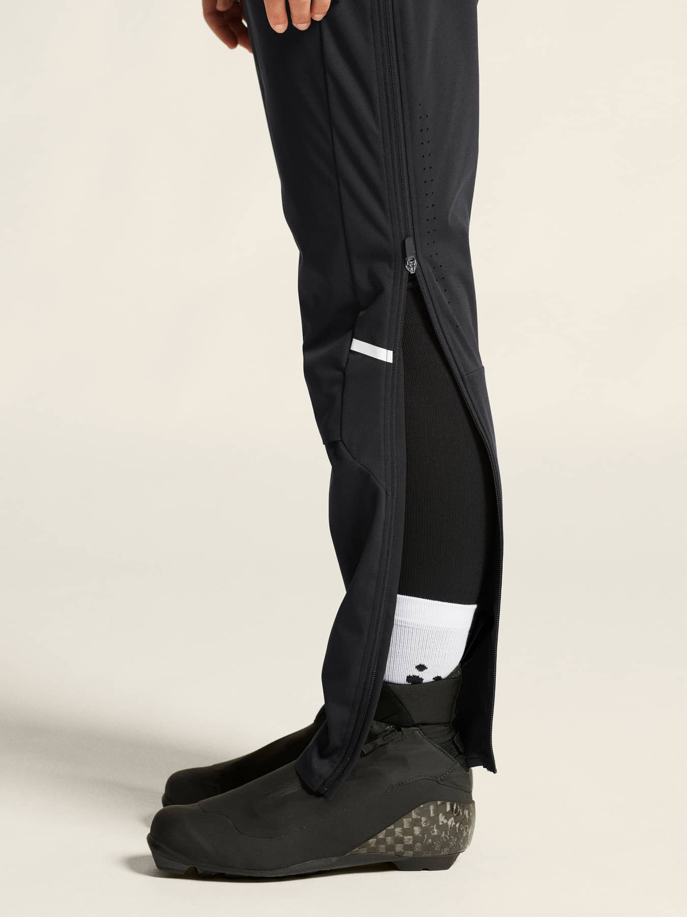 Pro Nordic Race FZ Pants sind leistungsstarke Langlaufhosen, die sowohl für hochintensive Trainingseinheiten bei kalten Bedingungen als auch als Aufwärmhose an Renntagen geeignet sind. Diese Profi-Hose besteht aus einem 3-lagigen wind- und wasserdichten Stretchmaterial, das beim intensiven Langlaufen eine hervorragende Funktion bietet. Perforationen am Rücken und Belüftungsöffnungen unter den Knien verbessern die Luftzirkulation, während verschweißte Beinabschlüsse für eine sichere, eng anliegende Passform sorgen. Der durchgehende 2-Wege-Reißverschluss an den Seiten ermöglicht ein einfaches An- und Ausziehen. • 3-lagiges wind- und wasserdichtes Ventair® Stretchgewebe, WP 15.000/MVP 10.000 • Belüftungsöffnung unter den Knien für verbesserte Wärmeregulierung • Perforierte Löcher auf der Rückseite für verbesserte Luftzirkulation • Durchgehender 2-Wege-Reißverschluss an den Seiten für einfaches An- und Ausziehen • Geklebte Beinabschlüsse für passgenauen Sitz • Tasche auf der mittleren Rückseite zur Aufbewahrung kleinerer Gegenstände • Kordelzug in der Taille