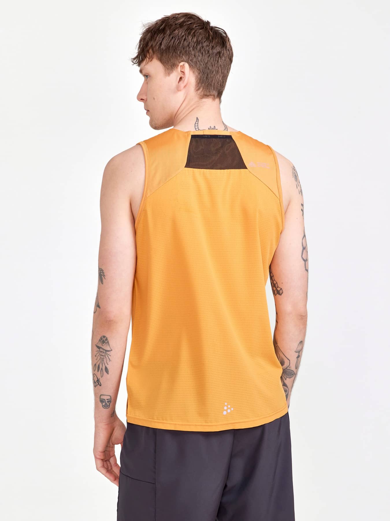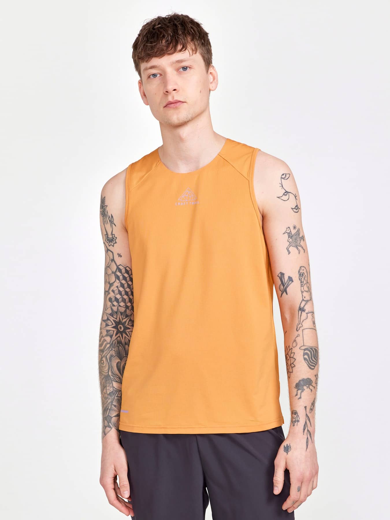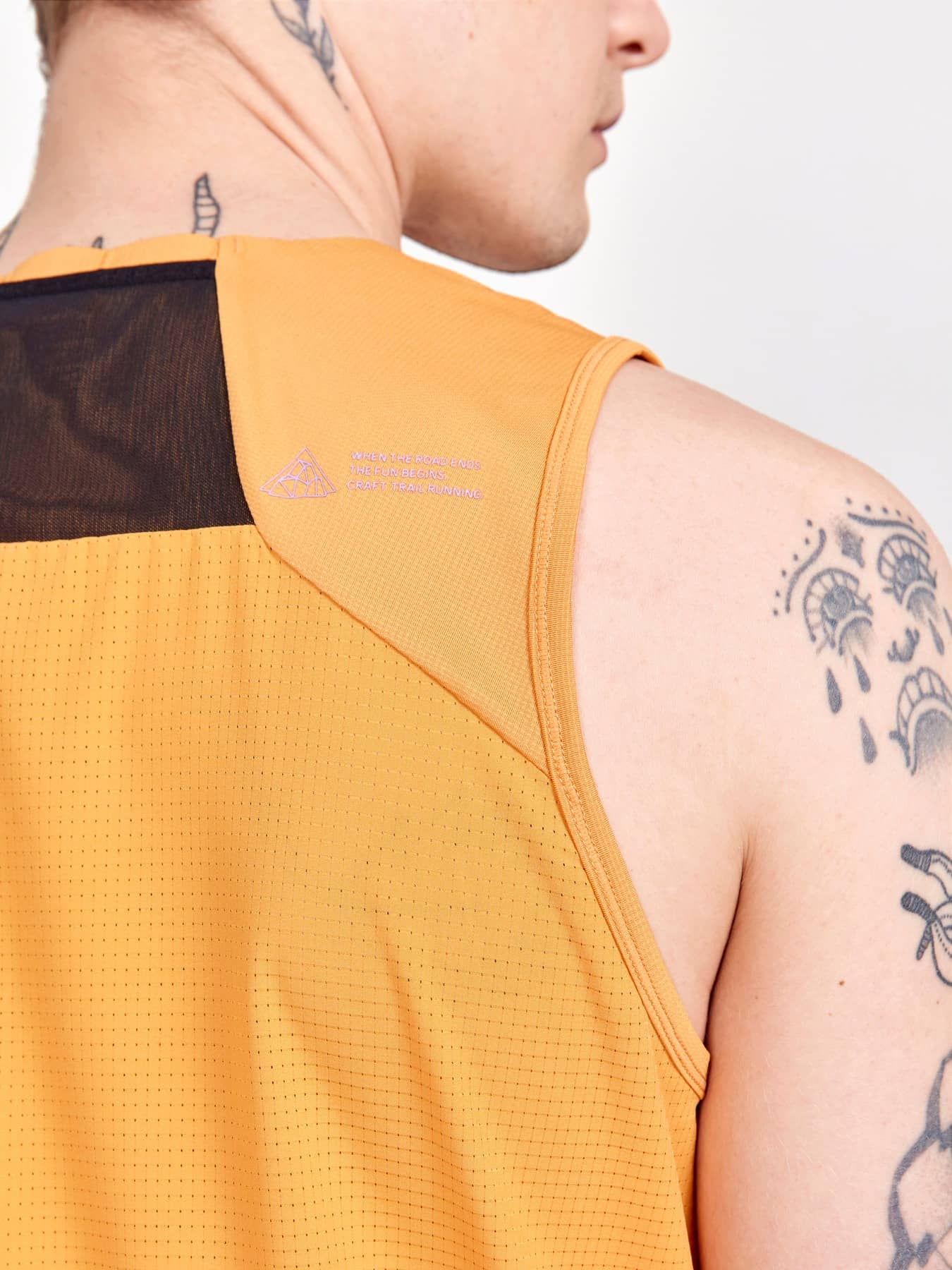 Trailrunning Singlet mit Mesh-Material am Rücken. • Regular fit • Kleine, elastische Netztasche an der oberen Rückenpasse zum Verstauen leichter Gegenstände • Elastisches, weiches Jaquard-Jersey auf der Vorderseite • Rückenteil aus Mesh-Gewebe für herausragende Belüftung • Silikonbesatz auf den Schultern für besseren Halt des Rucksack • Seitenschlitze am Bund für bessere Bewegungsfreiheit
