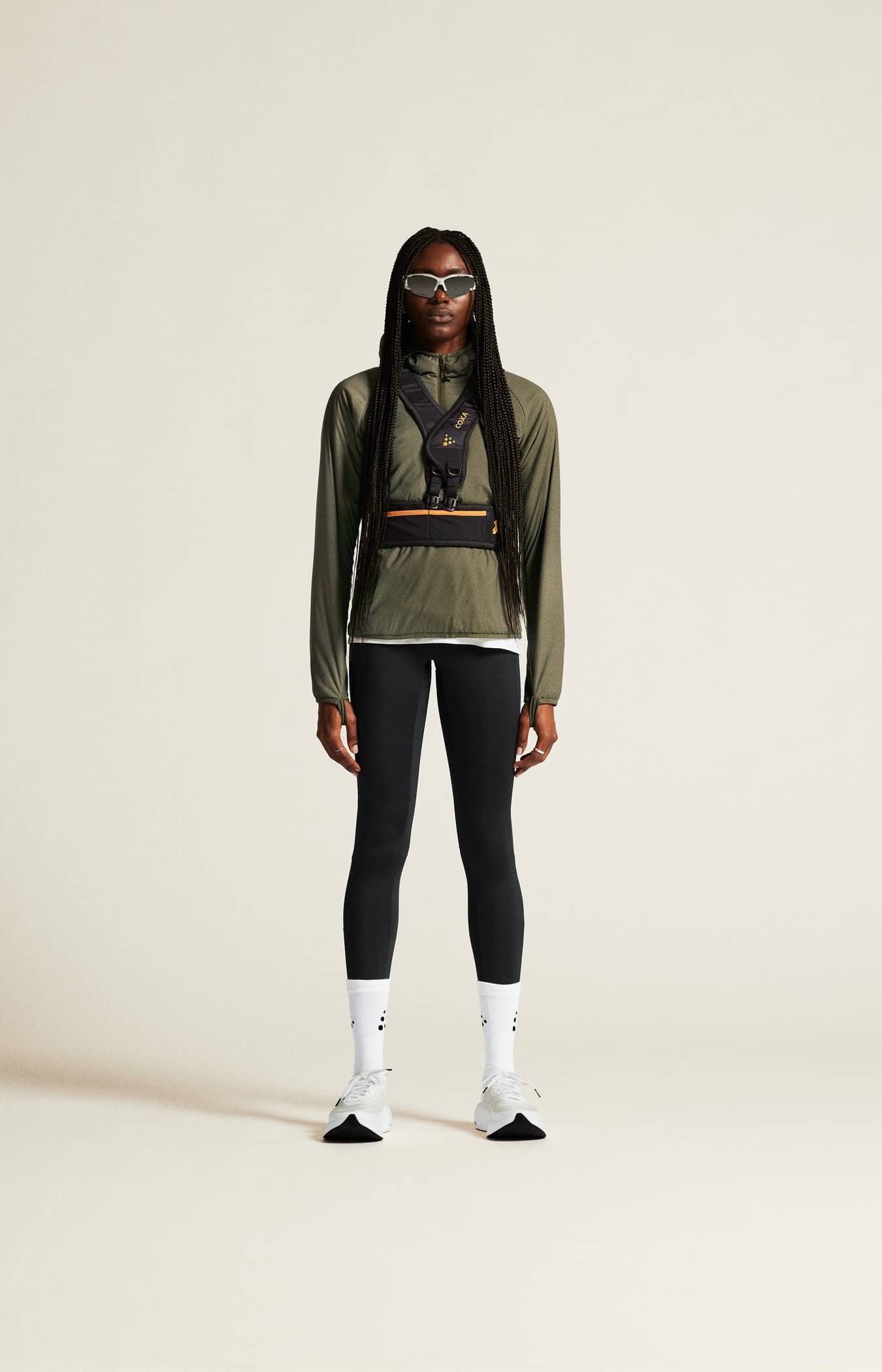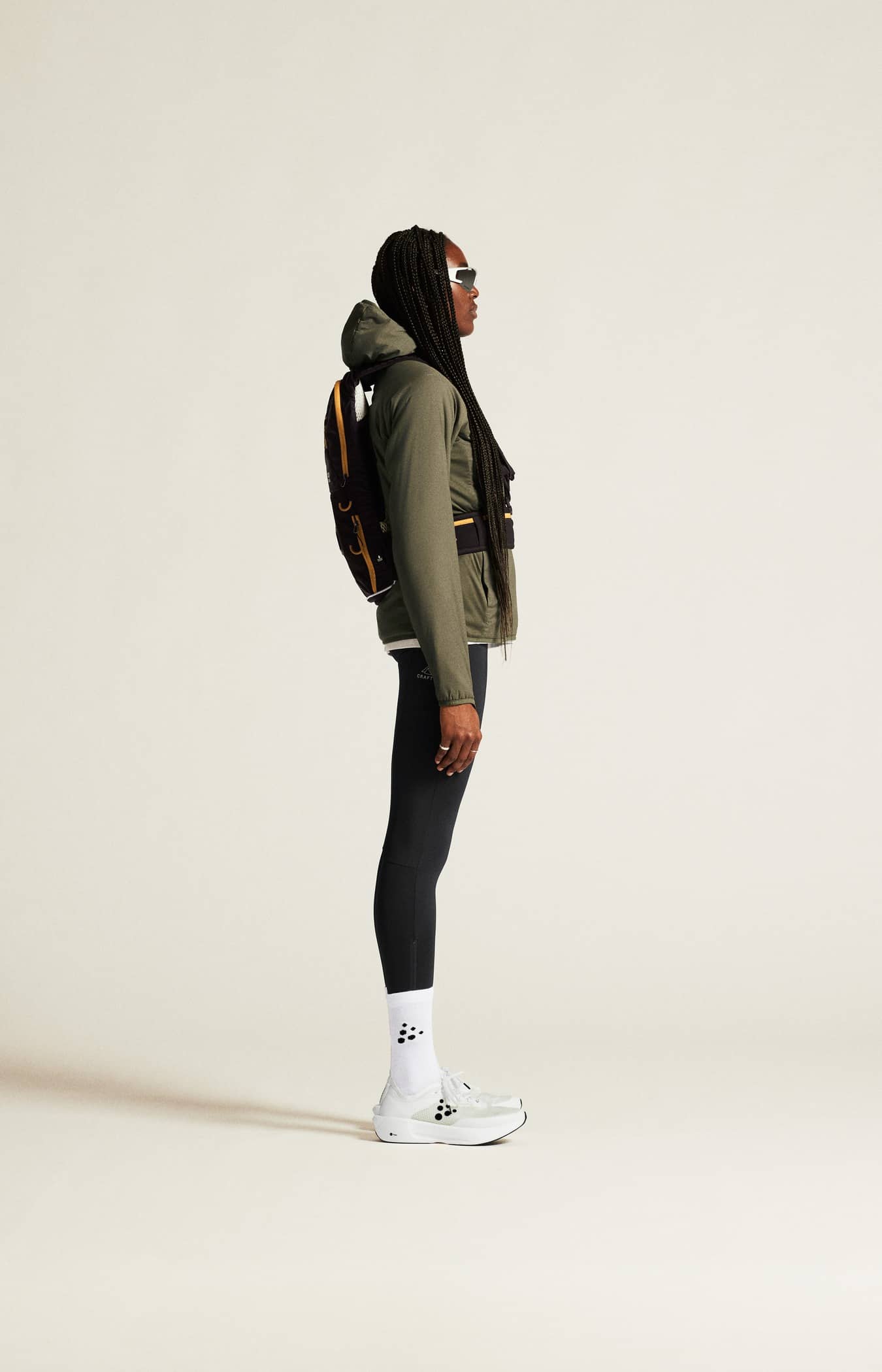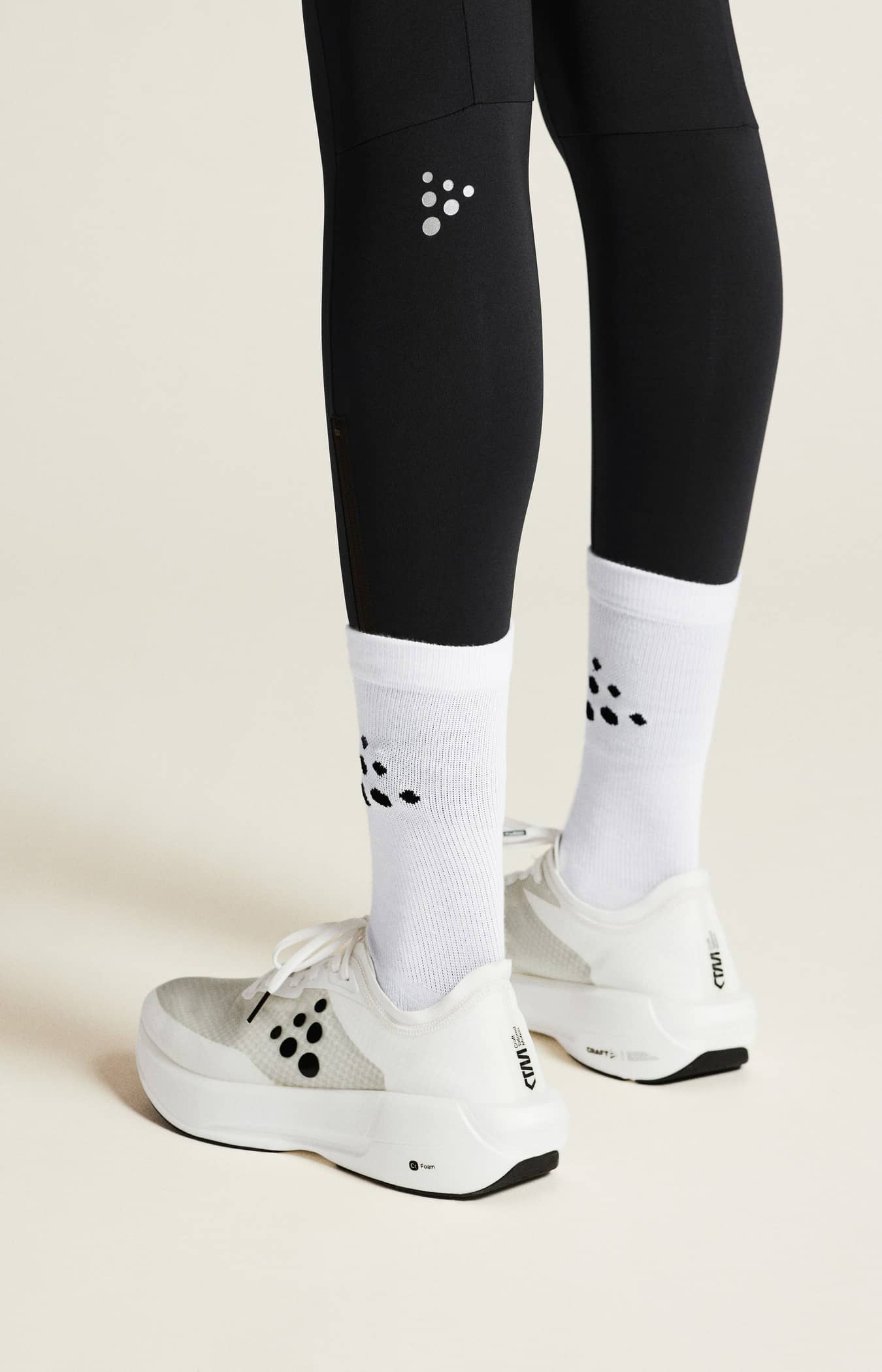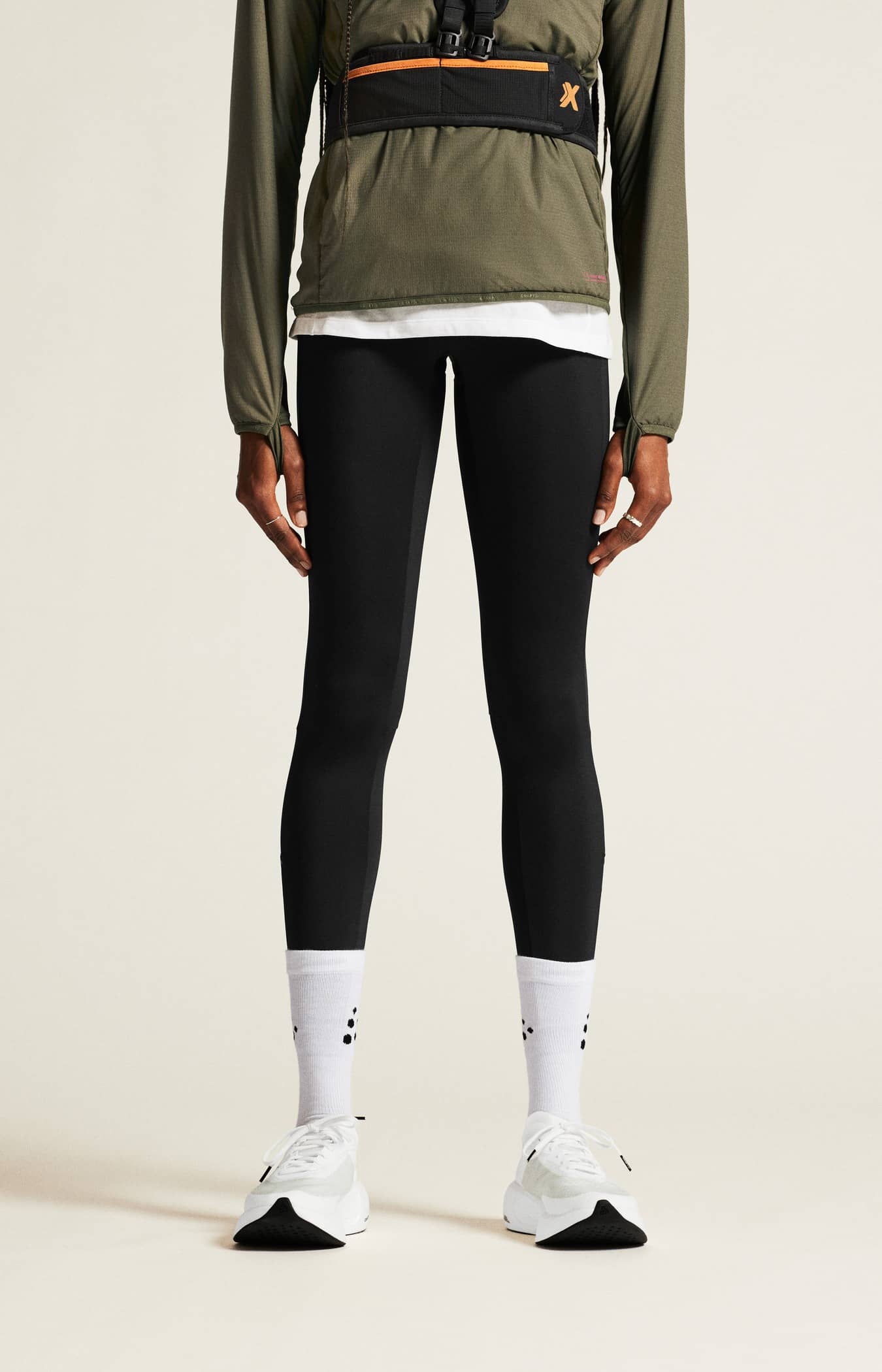 Diese leistungsstarken Tights bestehen aus recyceltem Polyamid-Jersey, der einen hervorragenden Feuchtigkeitstransport und eine hohe Strapazierfähigkeit bietet. Außerdem verfügt die Tights über einen breiten, elastischen Bund mit Kordelzug für eine verstellbare Passform, eine Handytasche am rechten Bein und drei offene Netztaschen an der Rückseite der Taille für den einfachen Zugriff auf Gel, Energieriegel usw. Seitliche Reißverschlüsse an den unteren Beinen sorgen für ein leichtes An- und Ausziehen.