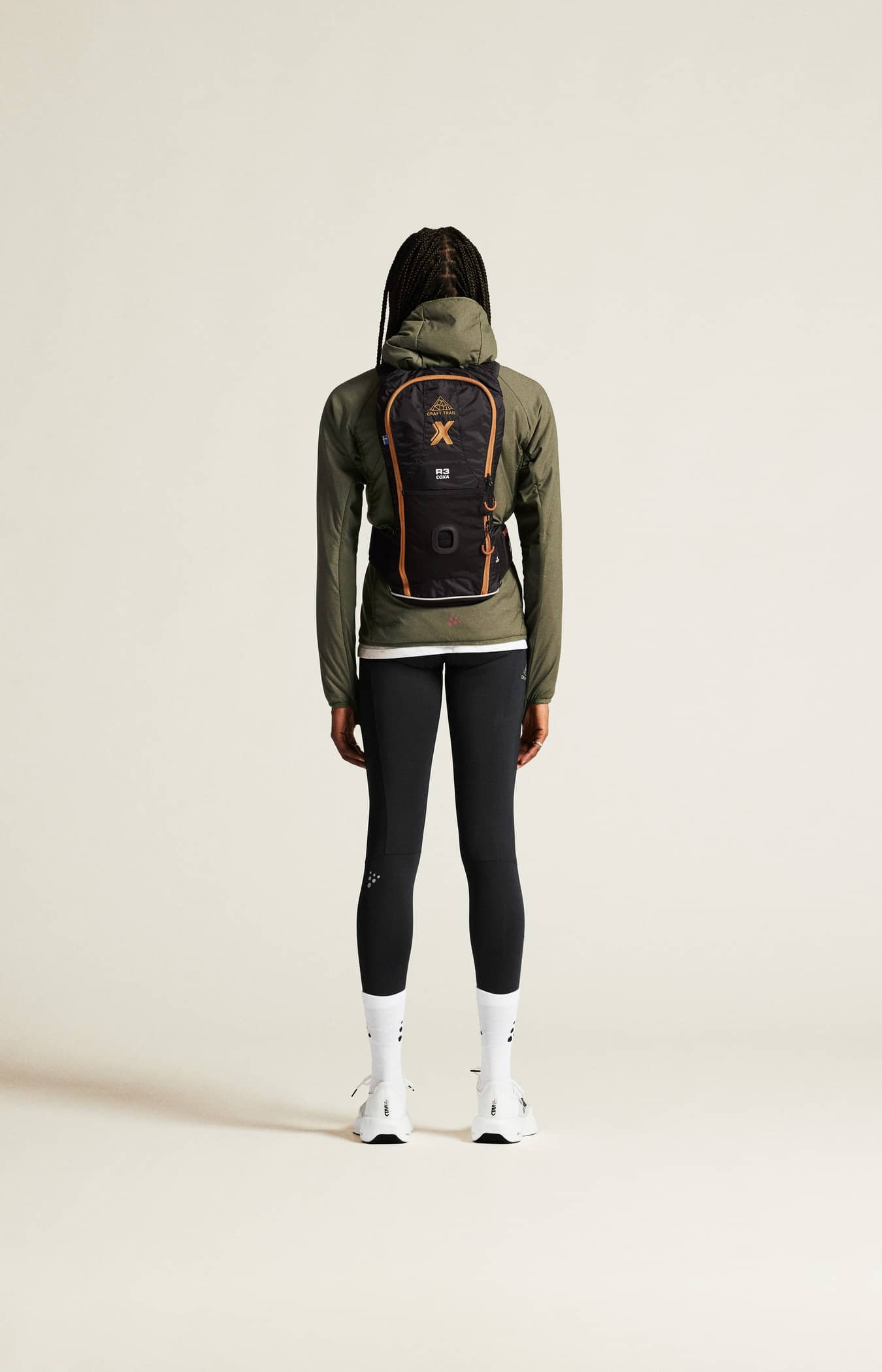 - Drei offene Netztaschen am hinteren Bund für Gel und Energieriegel