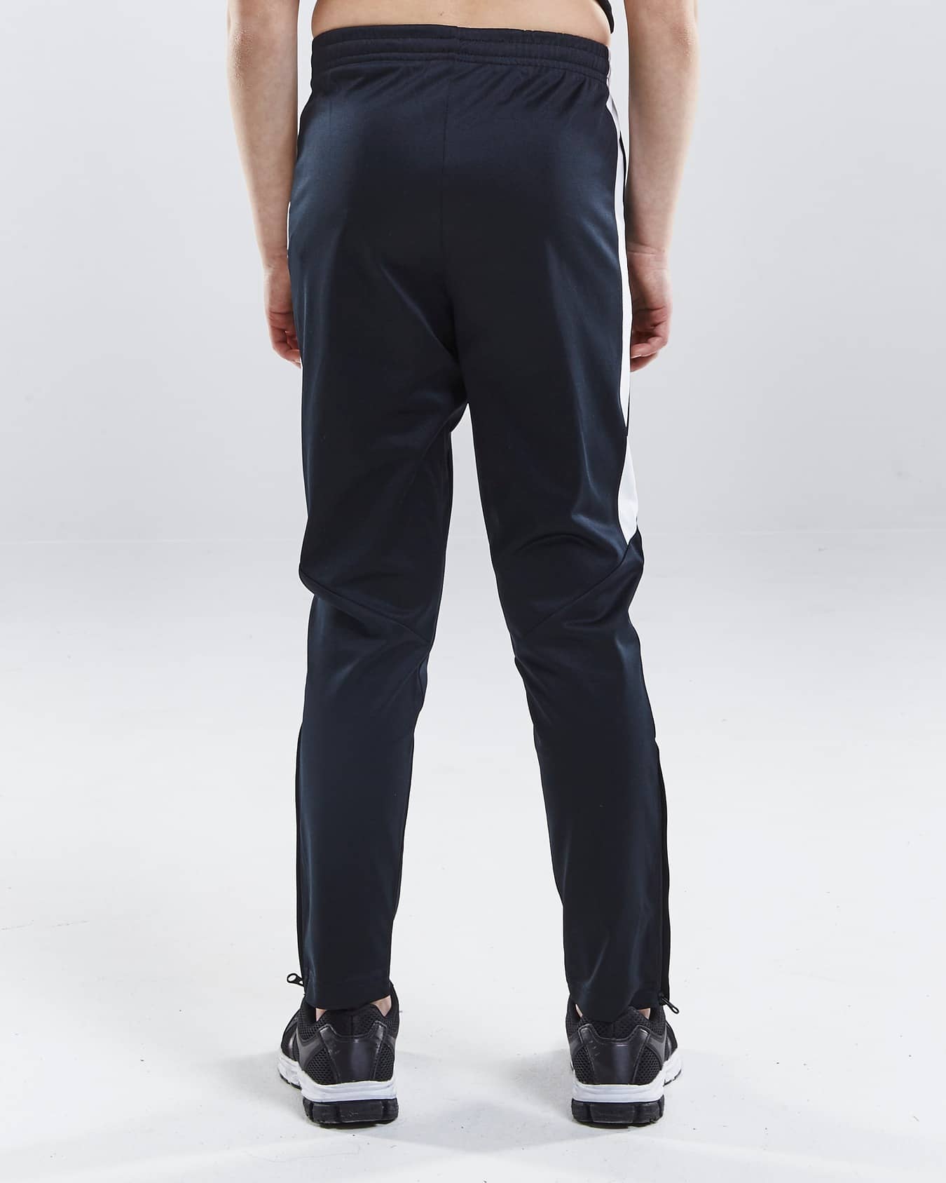 Elastische Trainingshose aus funktionellem Material mit hervorragenden Feuchtigkeitstransport für maximale Leistung. Tight fit und Reißverschlüssen an den Beinabschlüssen. Seitentaschen mit Reißverschluss. Elastischer Bund mit Kordelzug.
