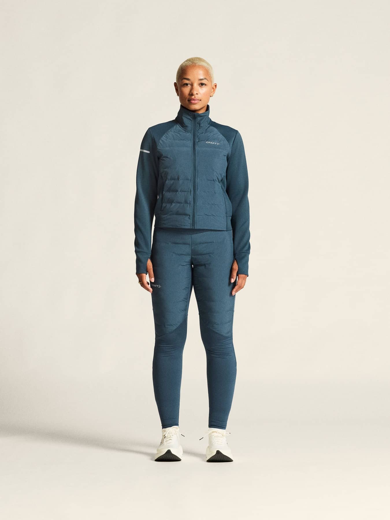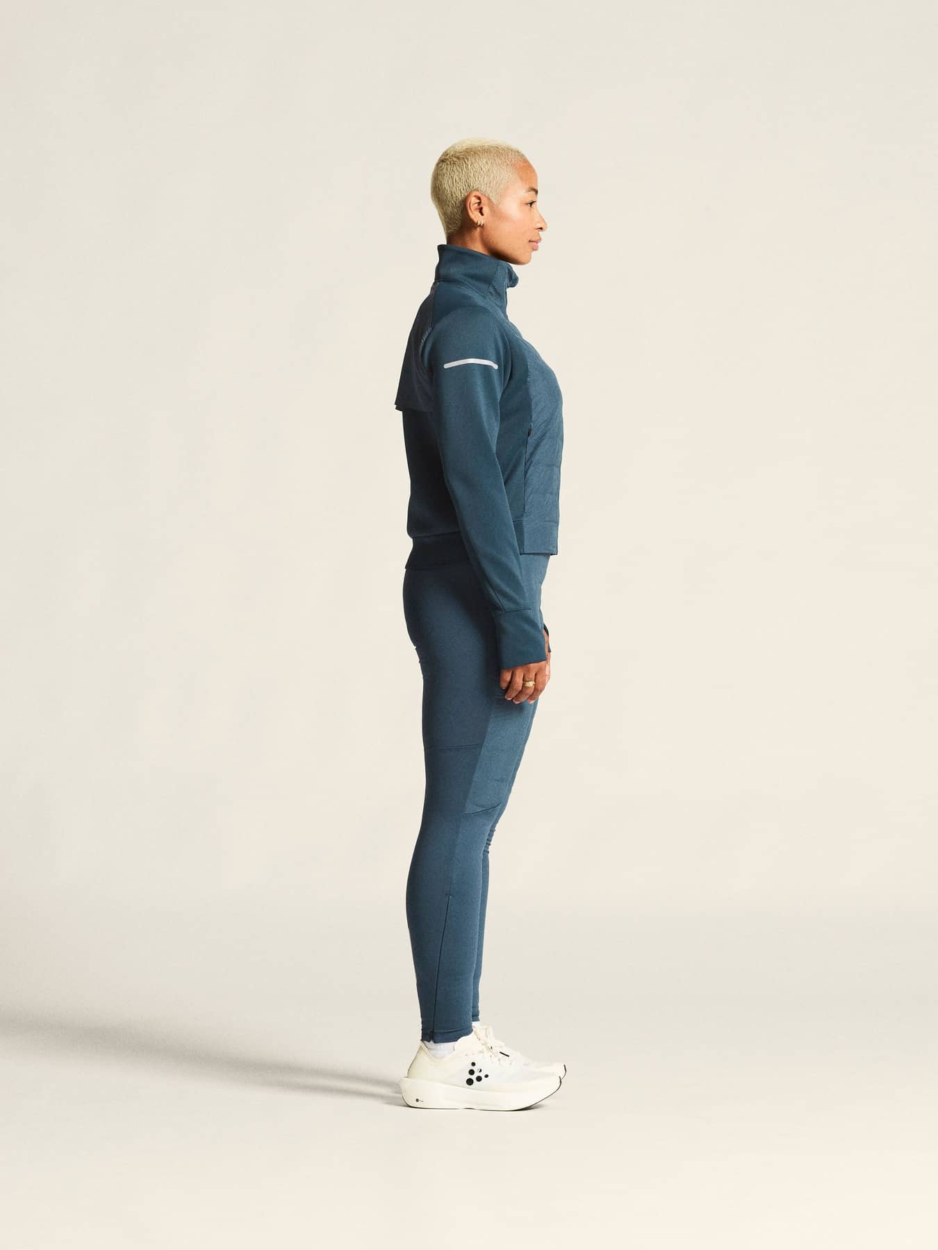 Diese technisch ausgereiften Lauftights verfügen über eine Frontpartie aus winddichtem Material mit leichter Isolierung in einer gebondeten 3-Lagen-Konstruktion. Gebürsteter Jersey aus recyceltem Polyester und Elastan an der oberen Vorderseite, am oberen Rücken und am unteren Bein sorgt für Wärme und Komfort. Der breite Bund gewährleistet eine optimale Passform.