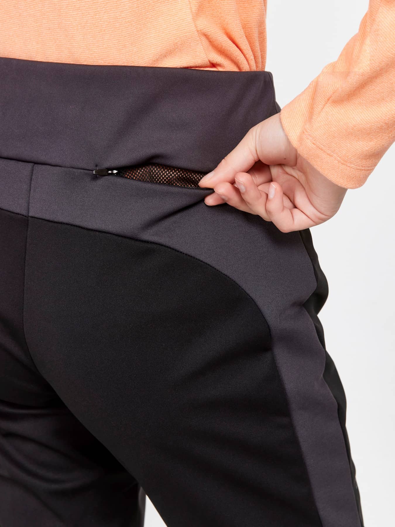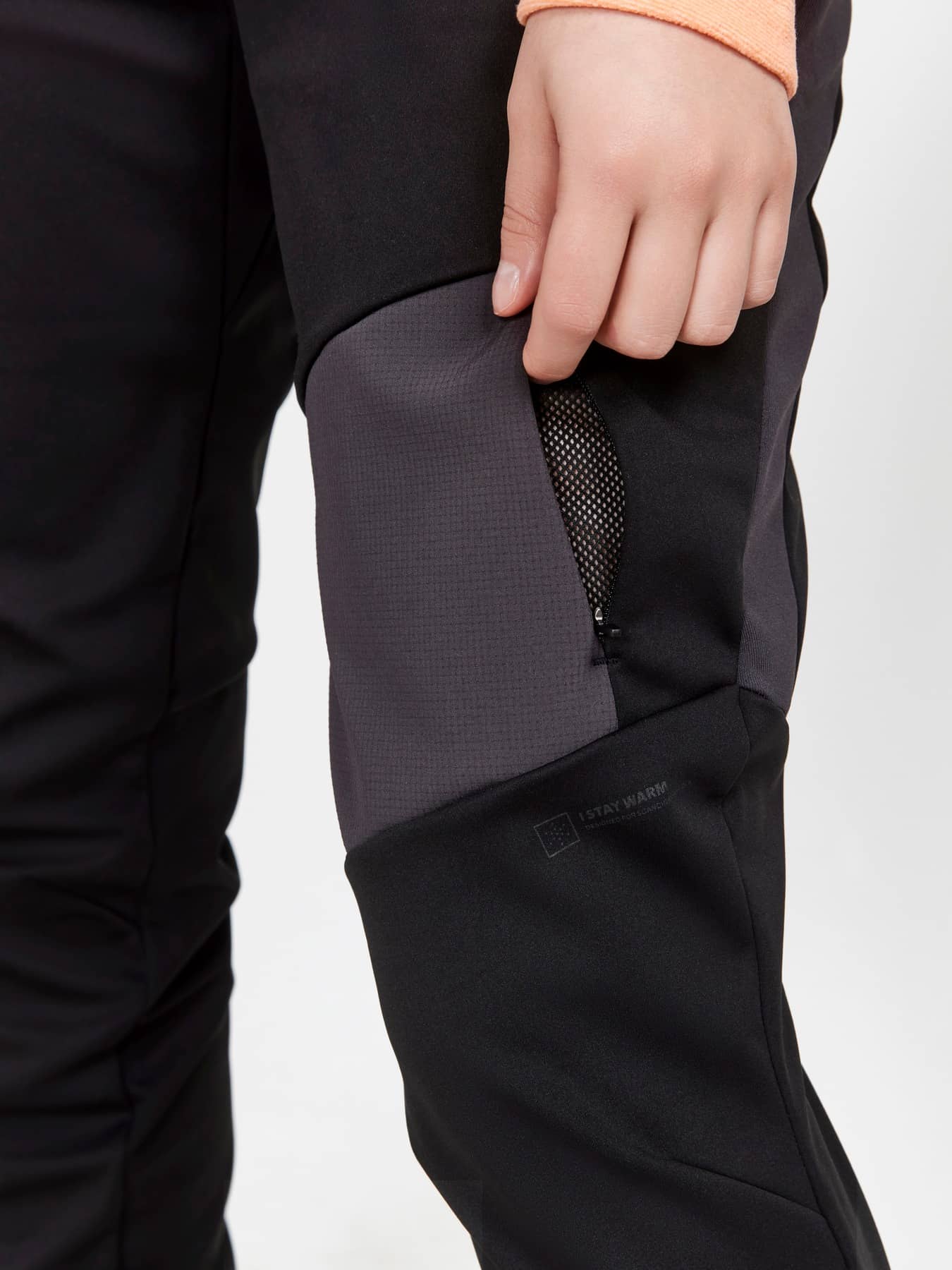 • Ficka med dragkedja på vänster ben