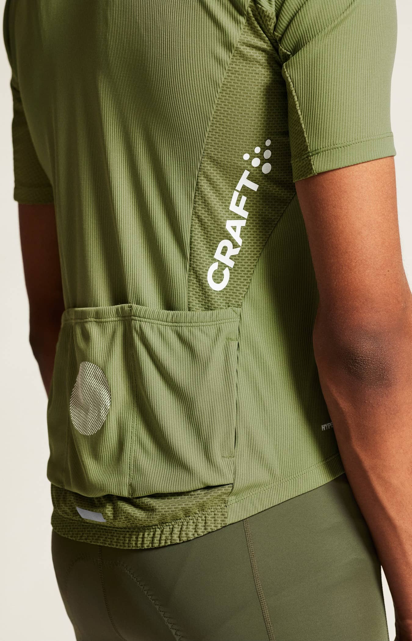 Denna avancerade cykeltröja är gjord av ett mjukt och stretchigt tyg som ger effektiv fukttransport och hög komfort vid intensiv cykling. Materialet är gjort av återvunnen polyester och har en ribb-struktur som ger en mjuk yta mot huden. Den ribbade strukturen skapar även luftkanaler som ger effektiv ventilation och fukttransport. Plagget har dessutom zonanpassade meshpaneler för extra ventilation, fyra ryggfickor samt silikonprint i ryggslutet för en säker passform.