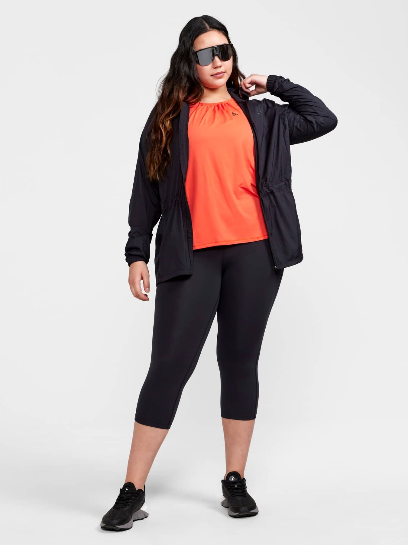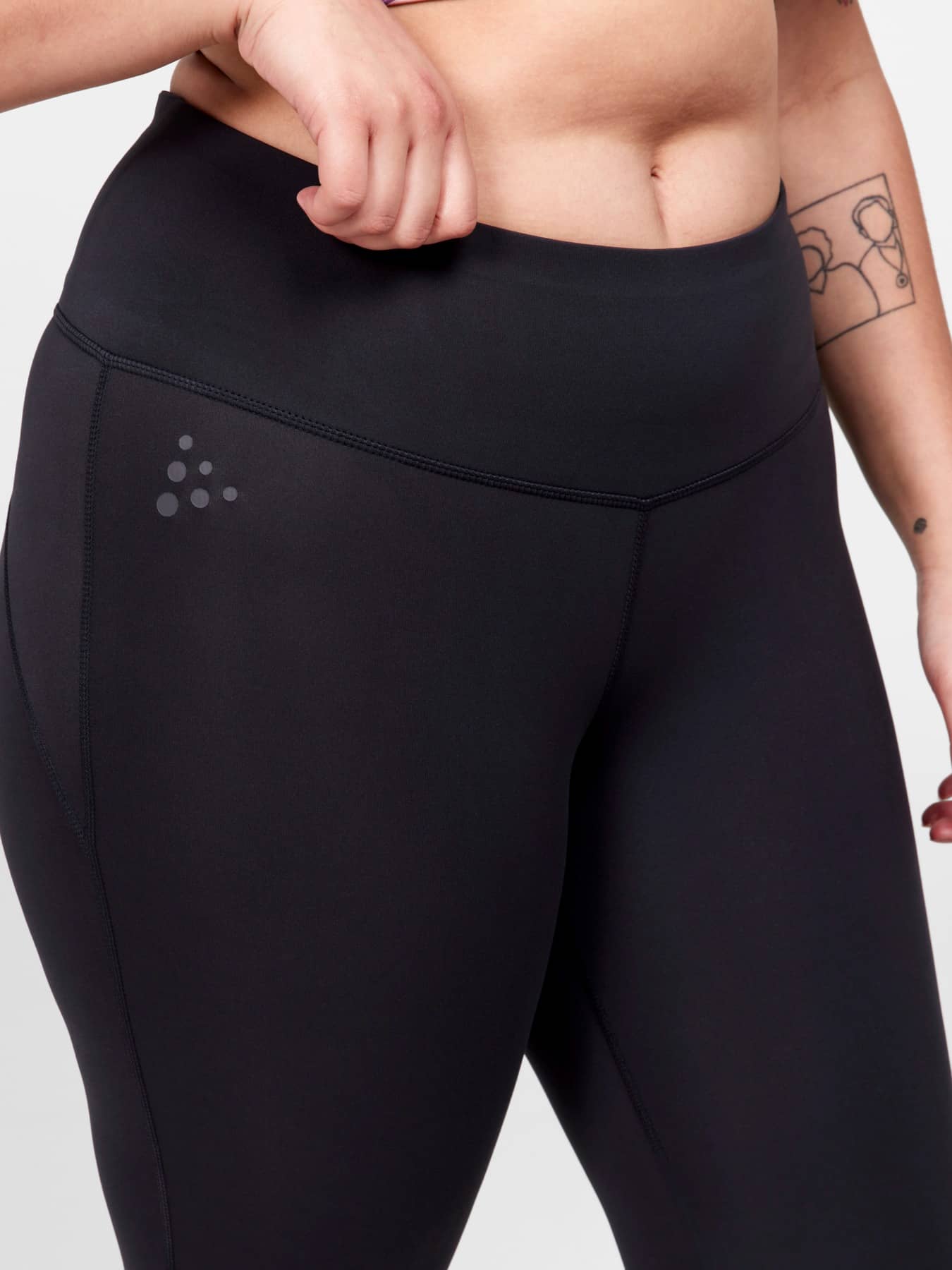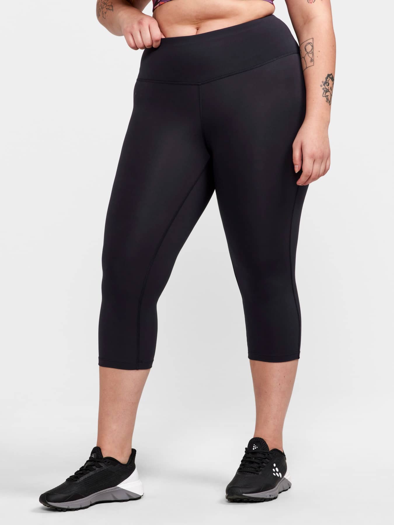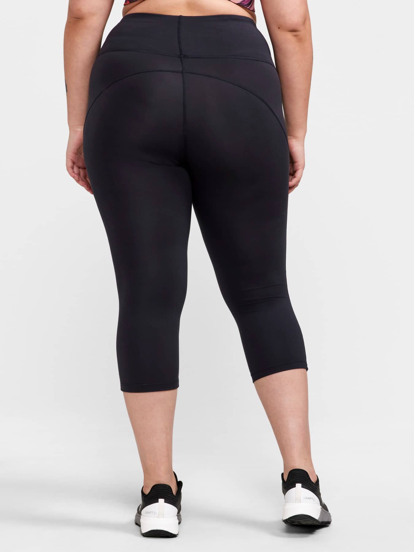 ADV Essence Plus Capri är funktionella träningstights med plus-size-passform, hög midja och bred resår för optimal komfort vid intensiv träning. Tightsen är gjorda av återvunnen polyester och elastan med bra pullback-effekt som ger effektiv fukttransport och bra passform.