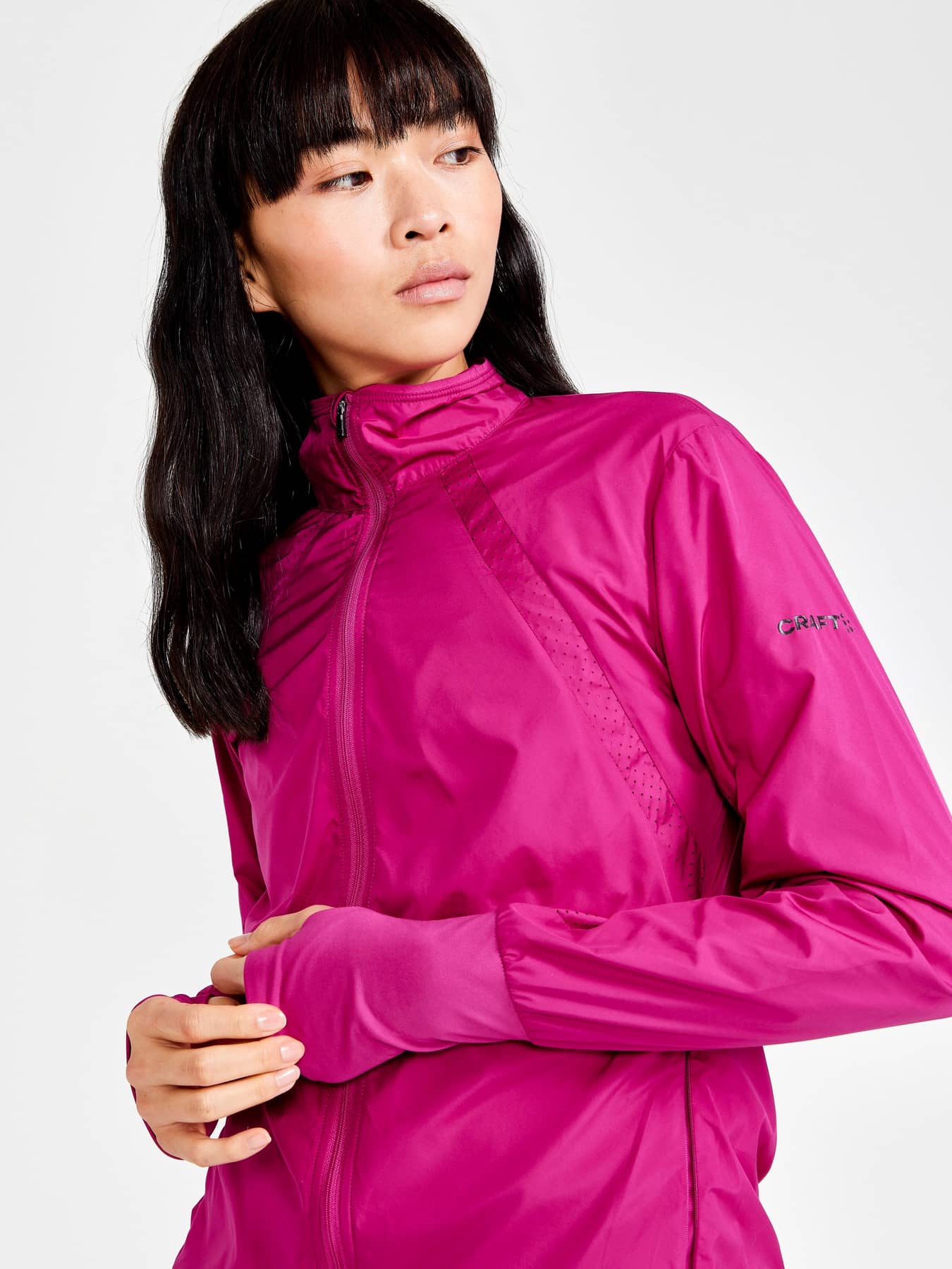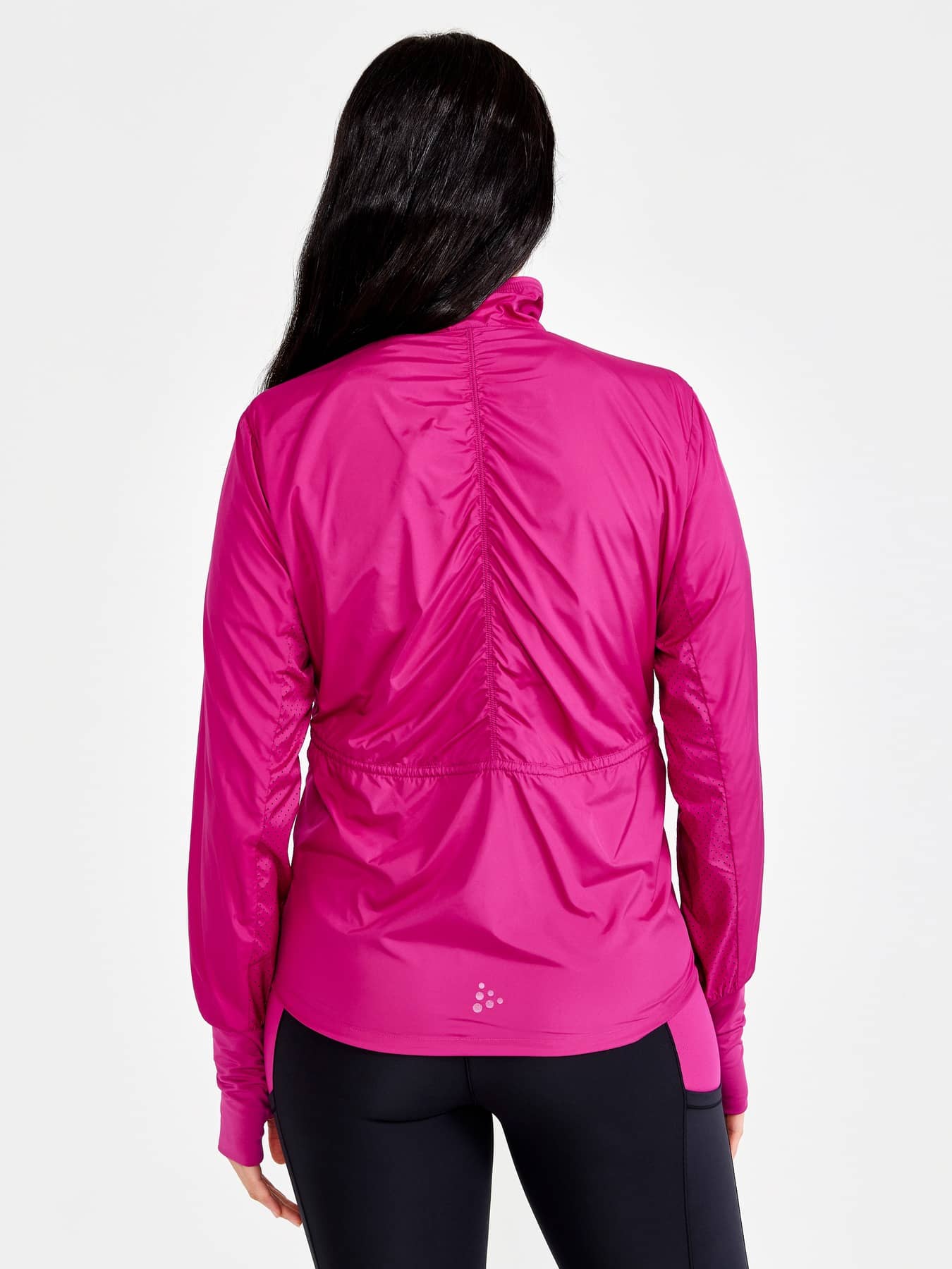 ADV Essence Wind Jacket är en mångsidig träningsjacka med justerbar dragsko i midjan för en feminin passform. Jackan är gjord av ett lätt, vind- och vattenavvisande material av återvunnen polyester som ger effektiv fukttransport och har dessutom perforeringar i bröst och armhålor för effektiv ventilation.