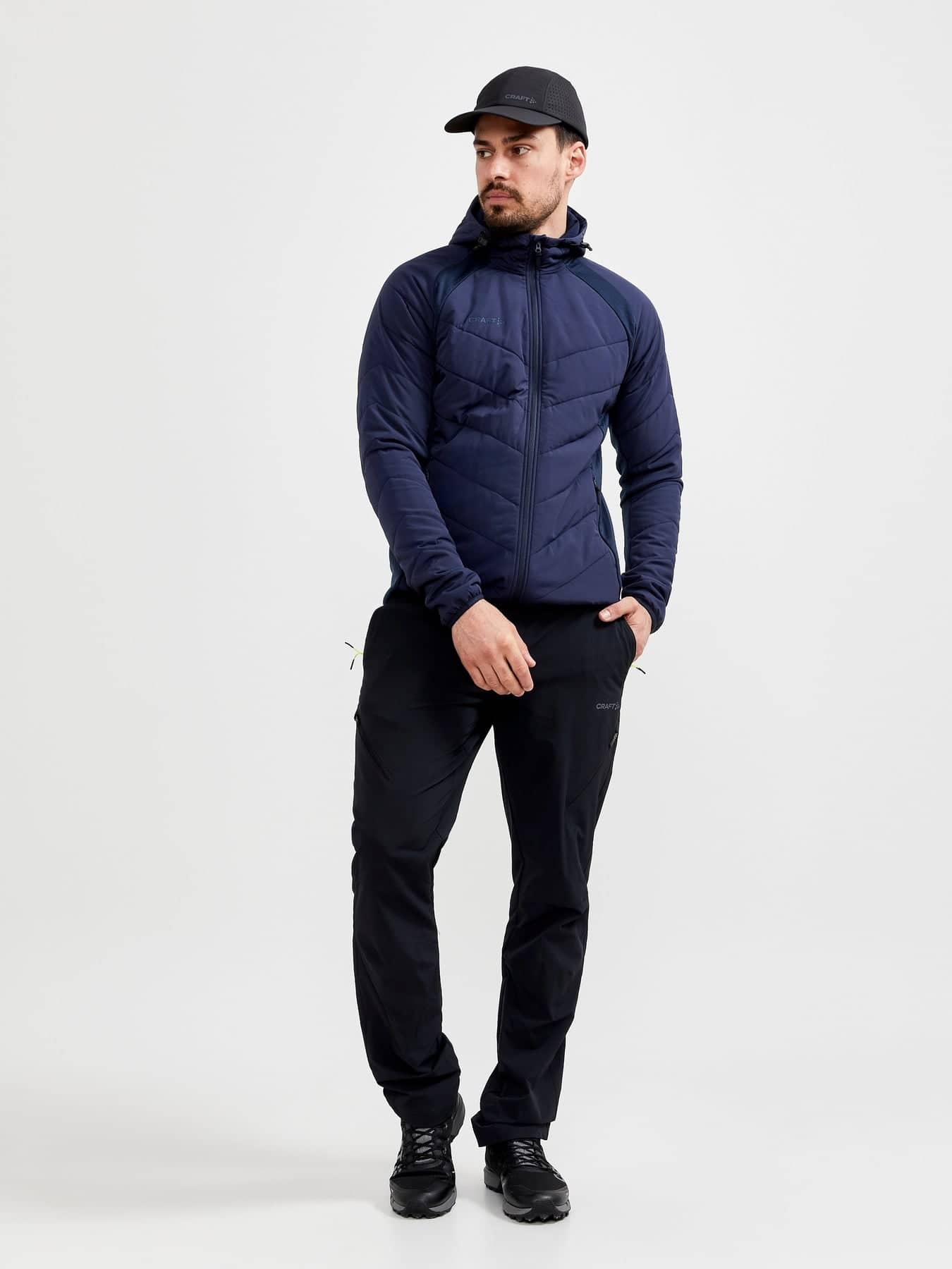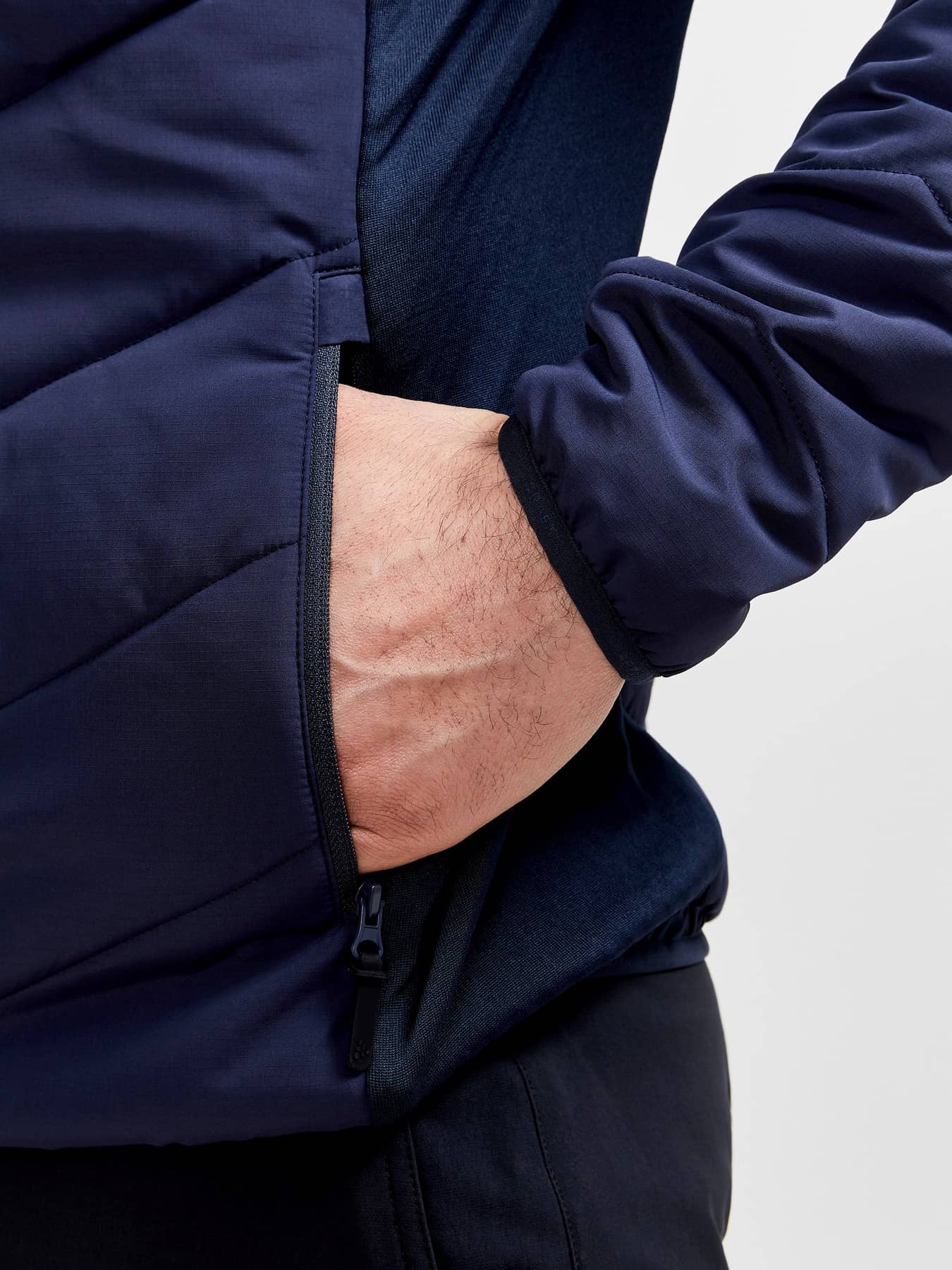 ADV Explore Hybrid Jacket är en lätt vadderad jacka i återvunnen polyester med sidopaneler i mjuk trikå för extra rörelsefrihet och ventilation. Jackan passar perfekt som en ytterjacka i mildare temperaturer eller som ett mellanlager under en skaljacka i kalla förhållanden.