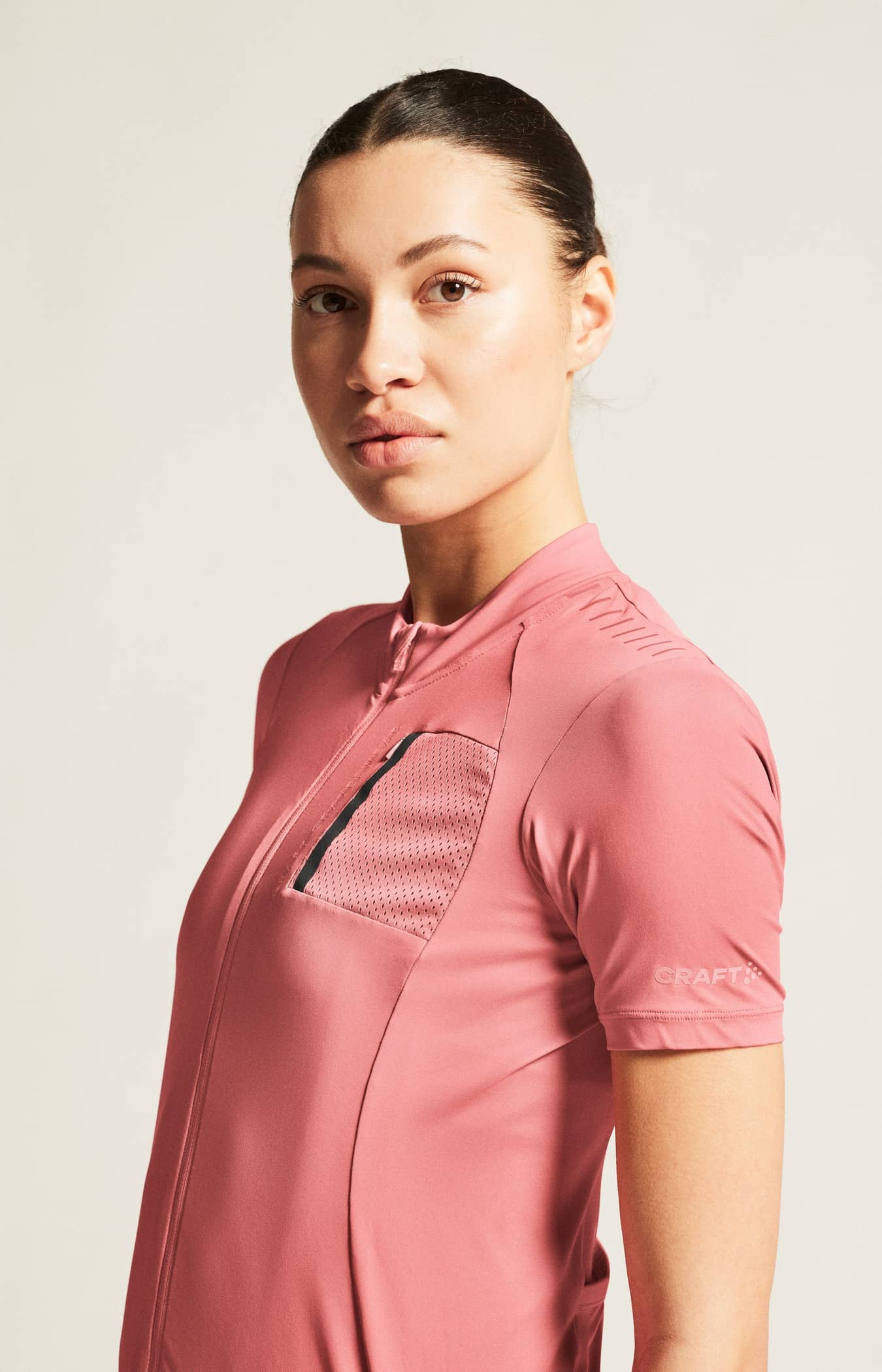 Tröjan är gjord av ett mjukt, elastiskt och slitstarkt material som ger effektiv temperaturreglering. Plagget har även fem fickor, silikonprint på axlarna och silikontejp i ryggslutet.