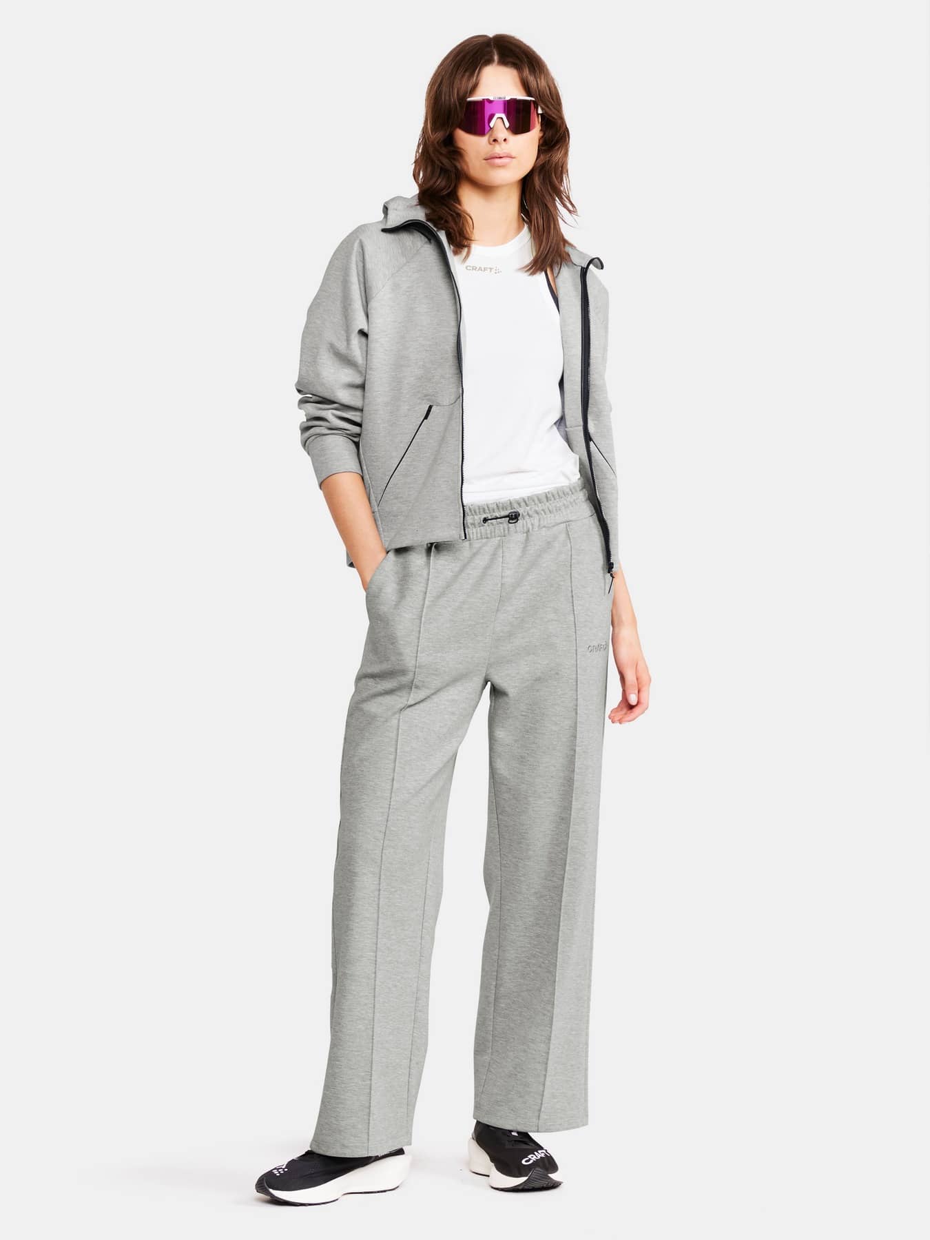 Detta stilrena plagg är gjort av ett premiumtyg med slät bomullsutsida och insida av mjuk polyester. Resultatet är en svettisjacka med hög komfort som passar perfekt på vägen till och från gymmet men även till avslappnade stunder i vardagen. Plagget har kort och vid passform, hellång dragkedja framtill, raglanärmar och känguruficka med dragkedjor. En minimalistisk design gör att jackan enkelt kan matchas med en mängd olika vardags- och träningsplagg. Broderad logo på vänster ärm förstärker plaggets premiumkänsla.
