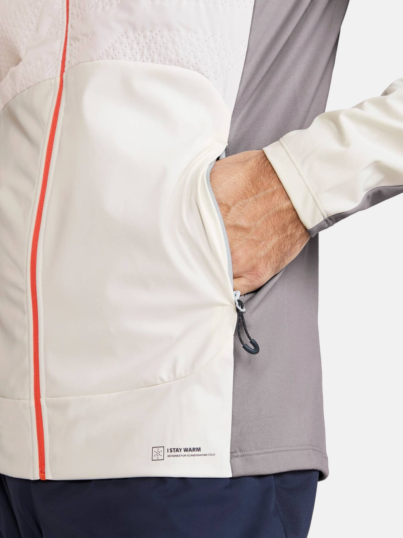 • Vind- och vattentätt 3-lagers material i ärmarna och nedre delen av framsidan