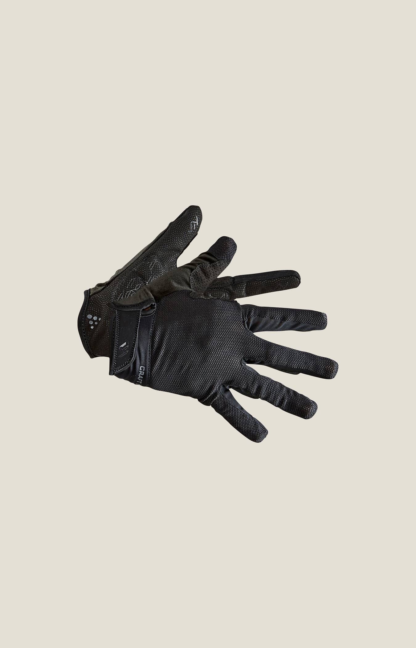 Cykelhandske med stötdämpande gel på tryckpunkter för optimal komfort, perforerad handflata för extra ventilation och silikonprint för bra grepp. Ergonomisk design och kardborrestängning ger optimal passform. Touchscreen-kompatibel.