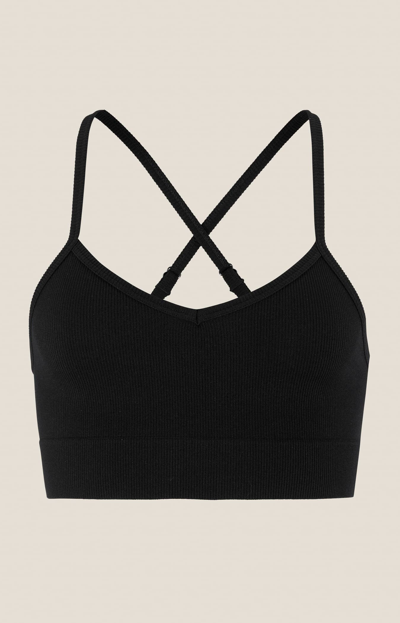 Behån är gjord i ett mjukt stretchmaterial med ribbstruktur som ger bra rörelsefrihet, effektiv reglering av kroppstemperaturen och hög komfort under hela dagen. Plagget har dessutom korslagda band i ryggen för en säker passform samt sömlös design för en extra mjuk känsla mot huden. Ett perfekt val för såväl intensiva pass på gymmet som lugna stunder i vardagen.