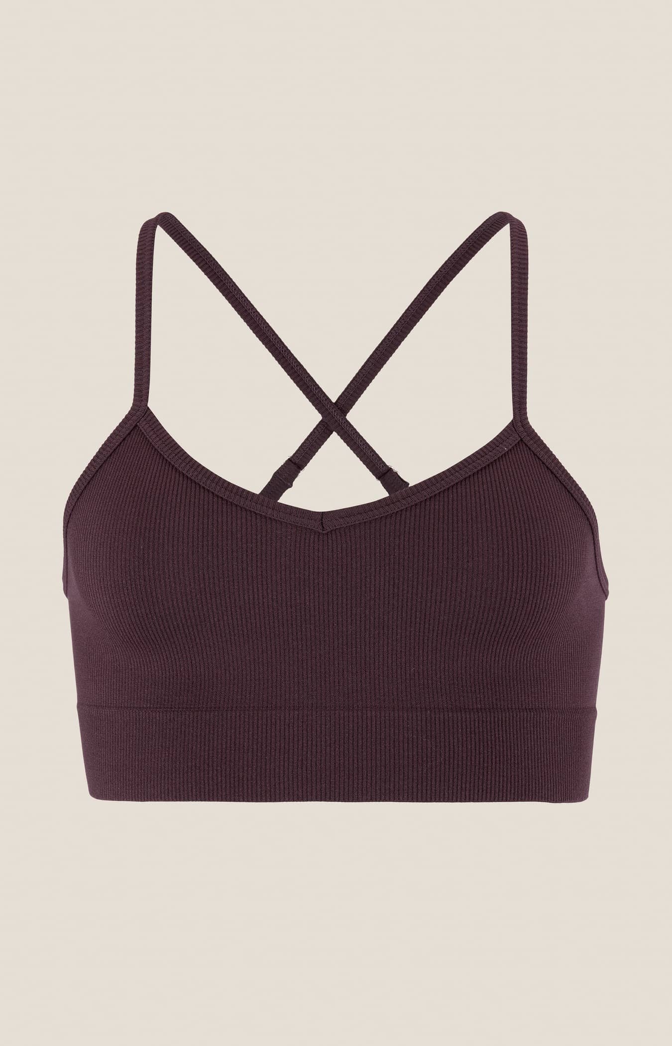 Behån är gjord i ett mjukt stretchmaterial med ribbstruktur som ger bra rörelsefrihet, effektiv reglering av kroppstemperaturen och hög komfort under hela dagen. Plagget har dessutom korslagda band i ryggen för en säker passform samt sömlös design för en extra mjuk känsla mot huden. Ett perfekt val för såväl intensiva pass på gymmet som lugna stunder i vardagen.