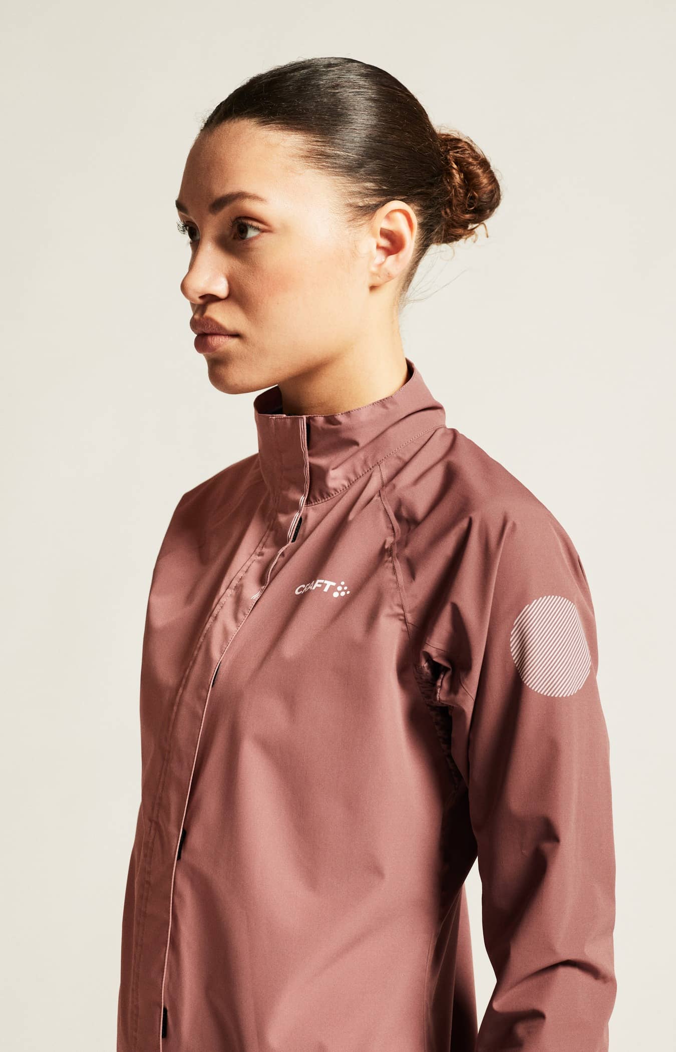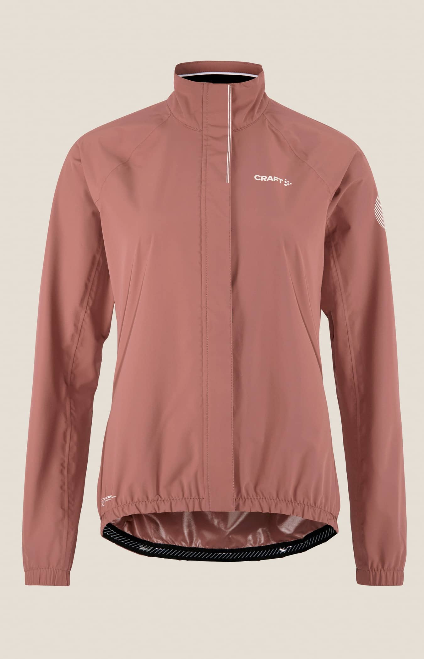 Jackan är gjord av ett vind- och vattentätt material och har tejpade sömmar för optimalt väderskydd. Plagget har även ventilerande mesh i armhålorna, borstad fleece på kragens insida och elastisk bandkantning i ärmslut och nedtill som stänger ute regn och blåst.