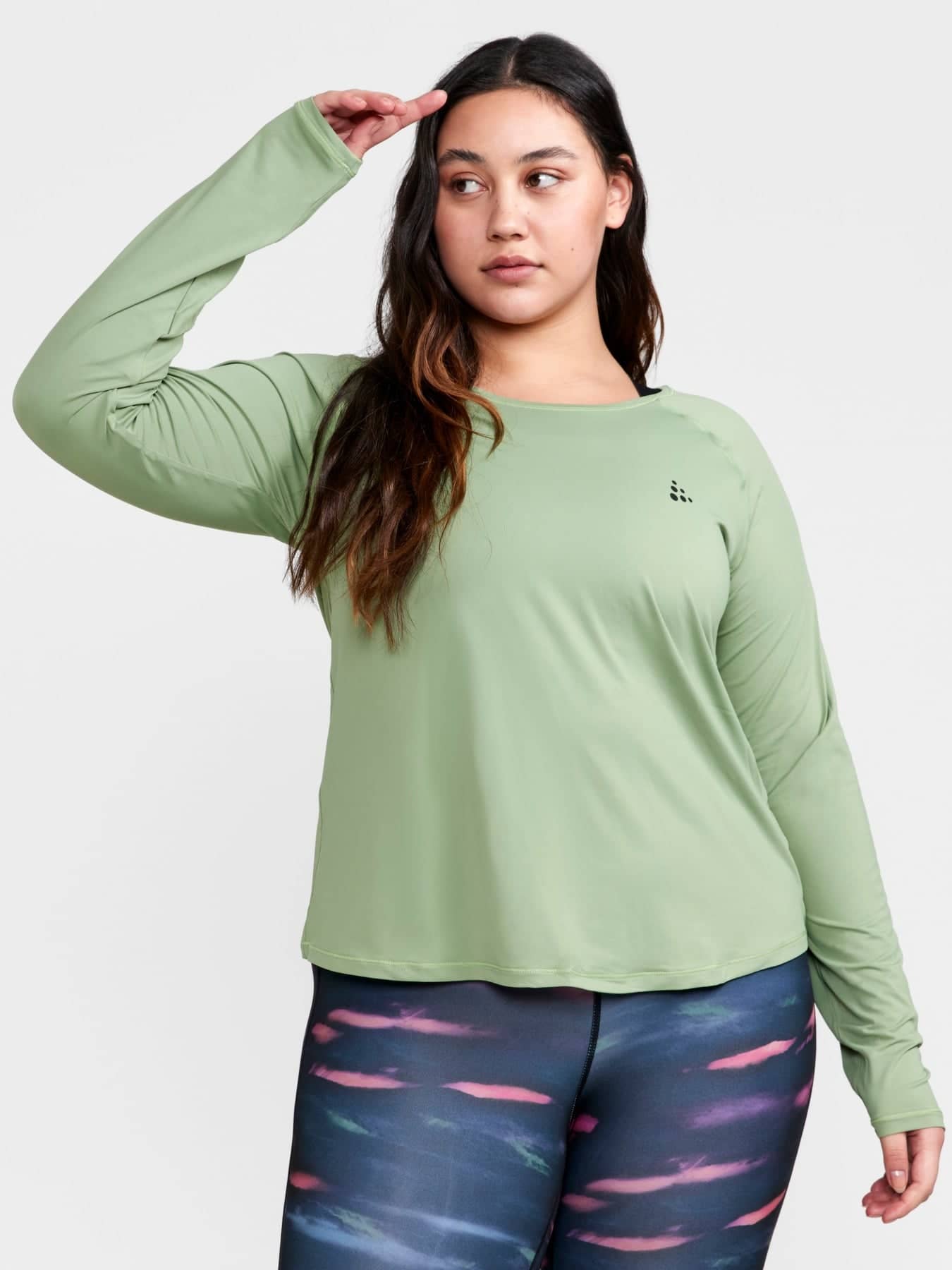 CORE Essence LS Plus Tee är en långärmad tränings-t-shirt som passar till de flesta typer av träningspass. Plagget är gjort av återvunnen polyester med effektiv fukttransport och har plus-size-passform.
