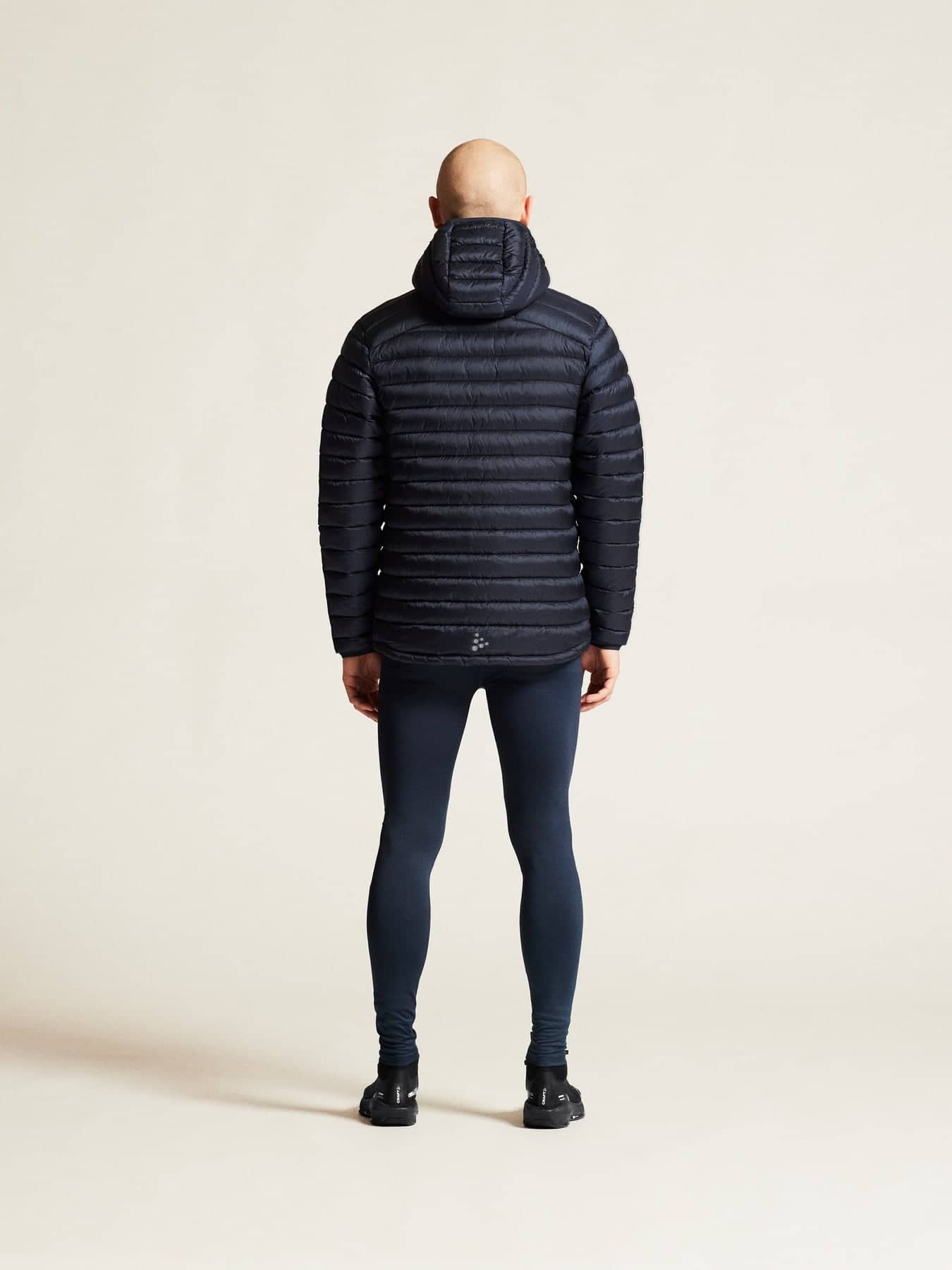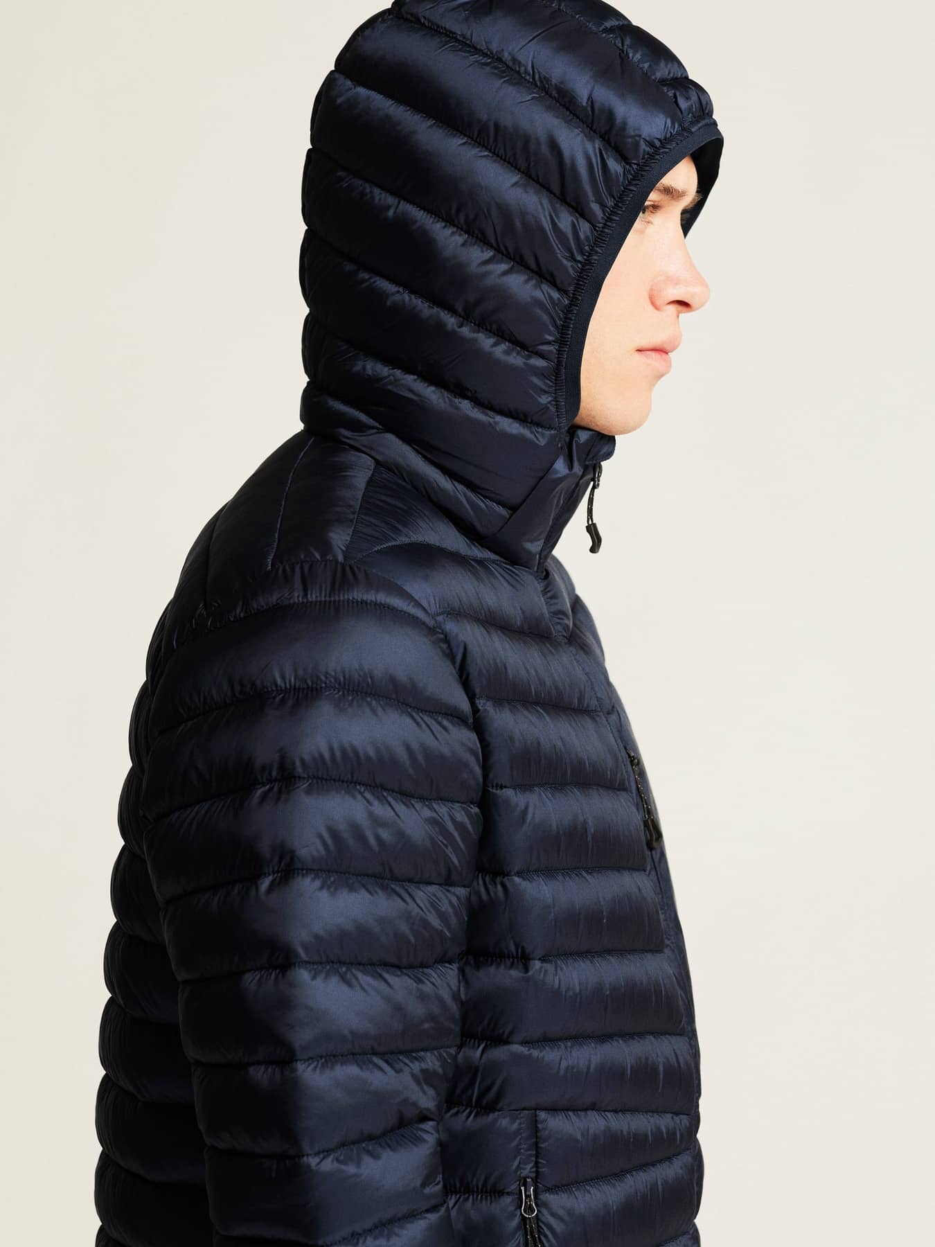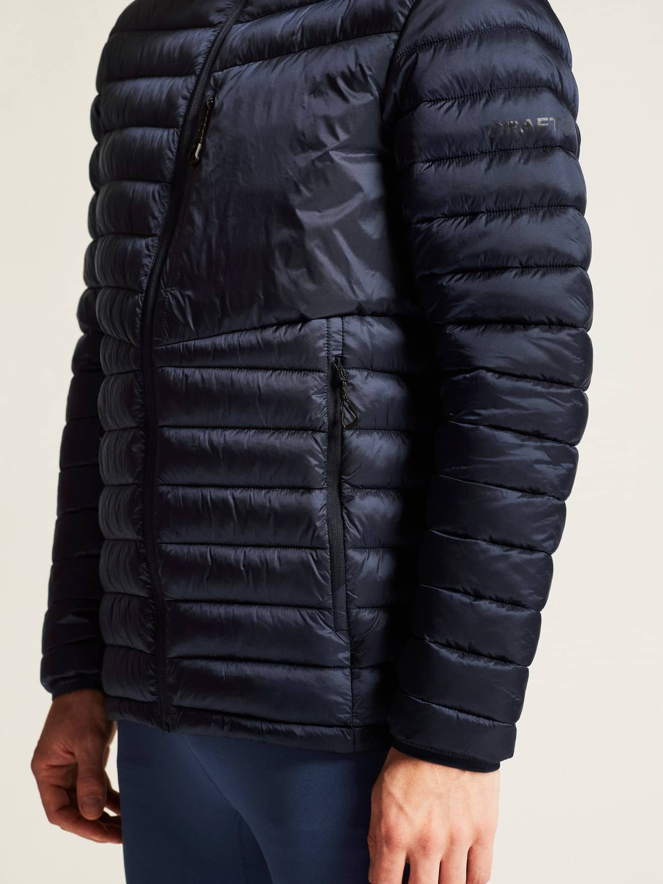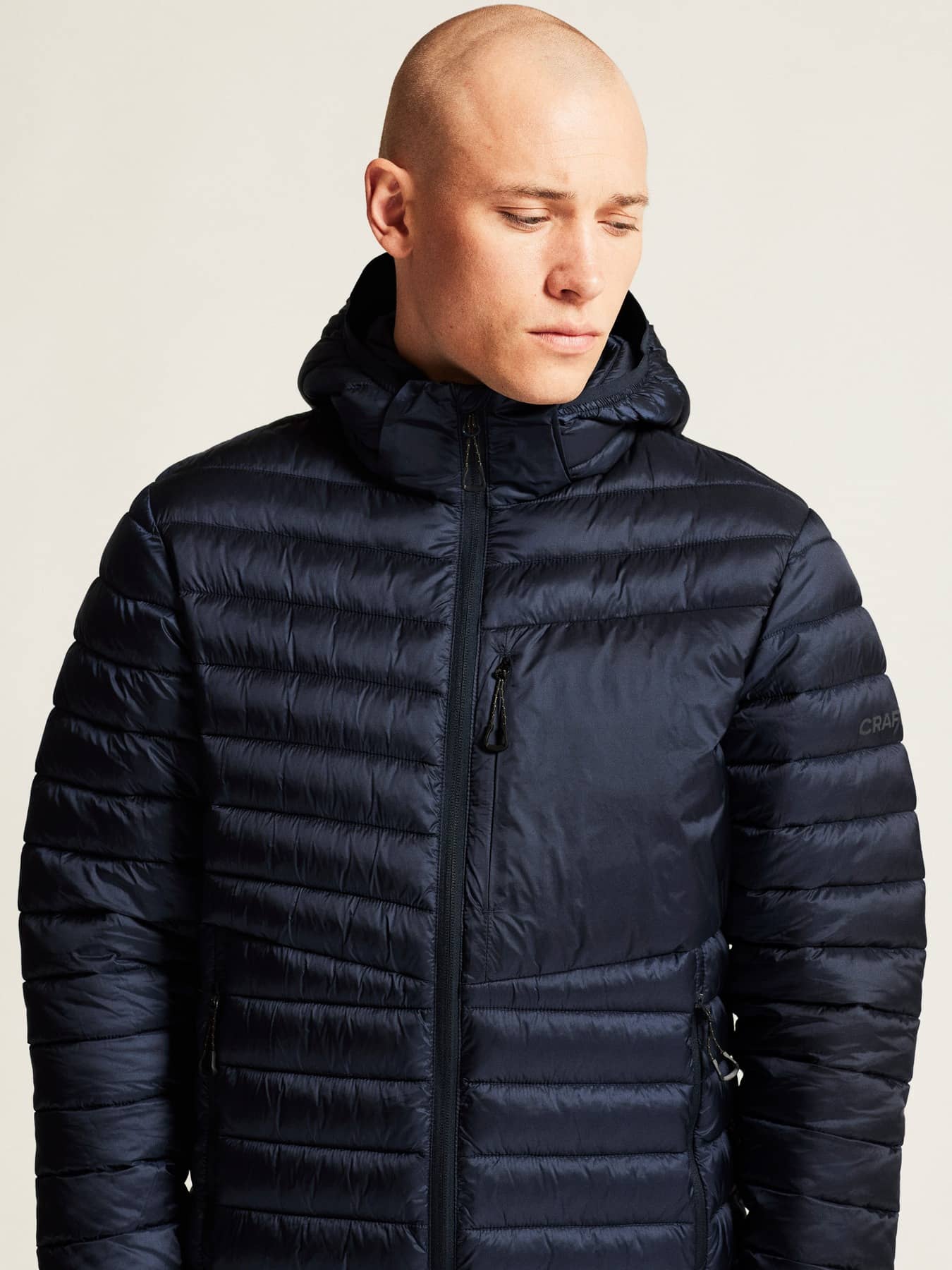 • Kviltad design i kropp, ärmar och huva