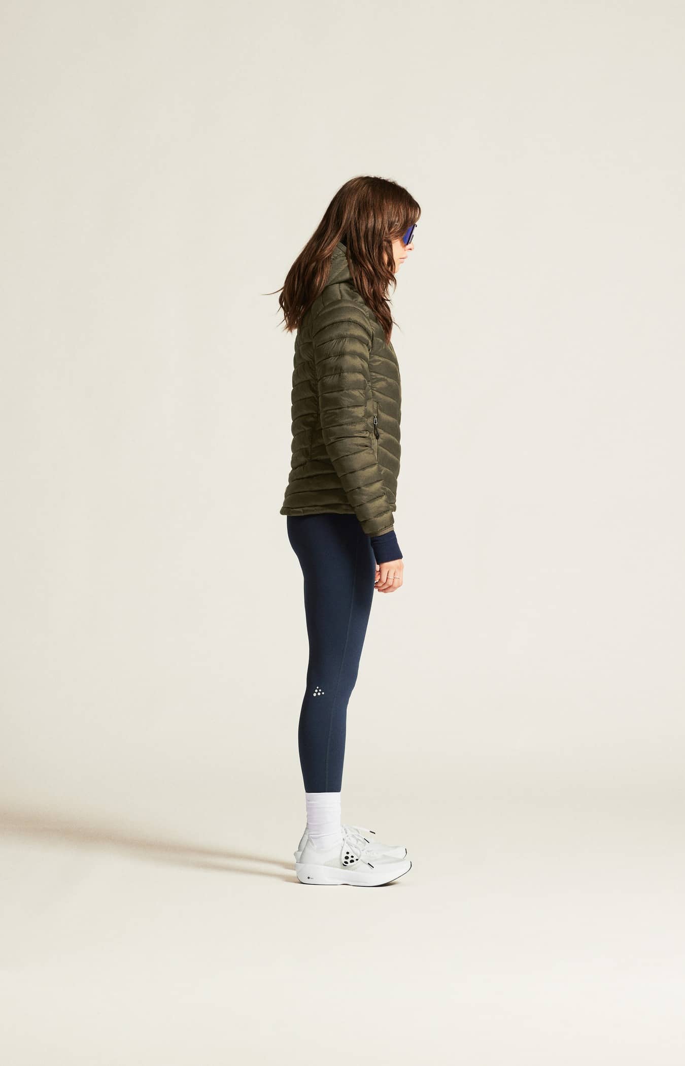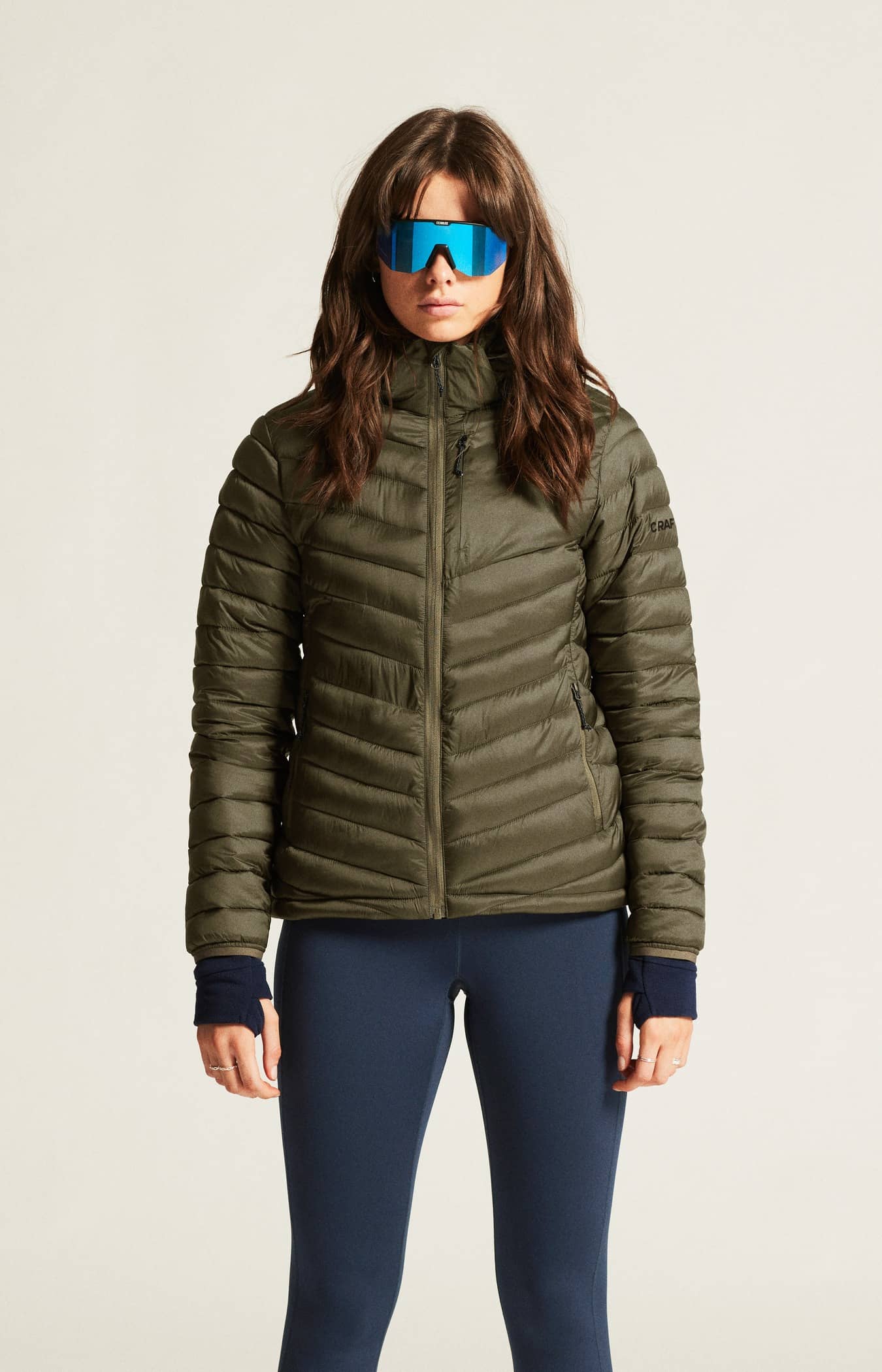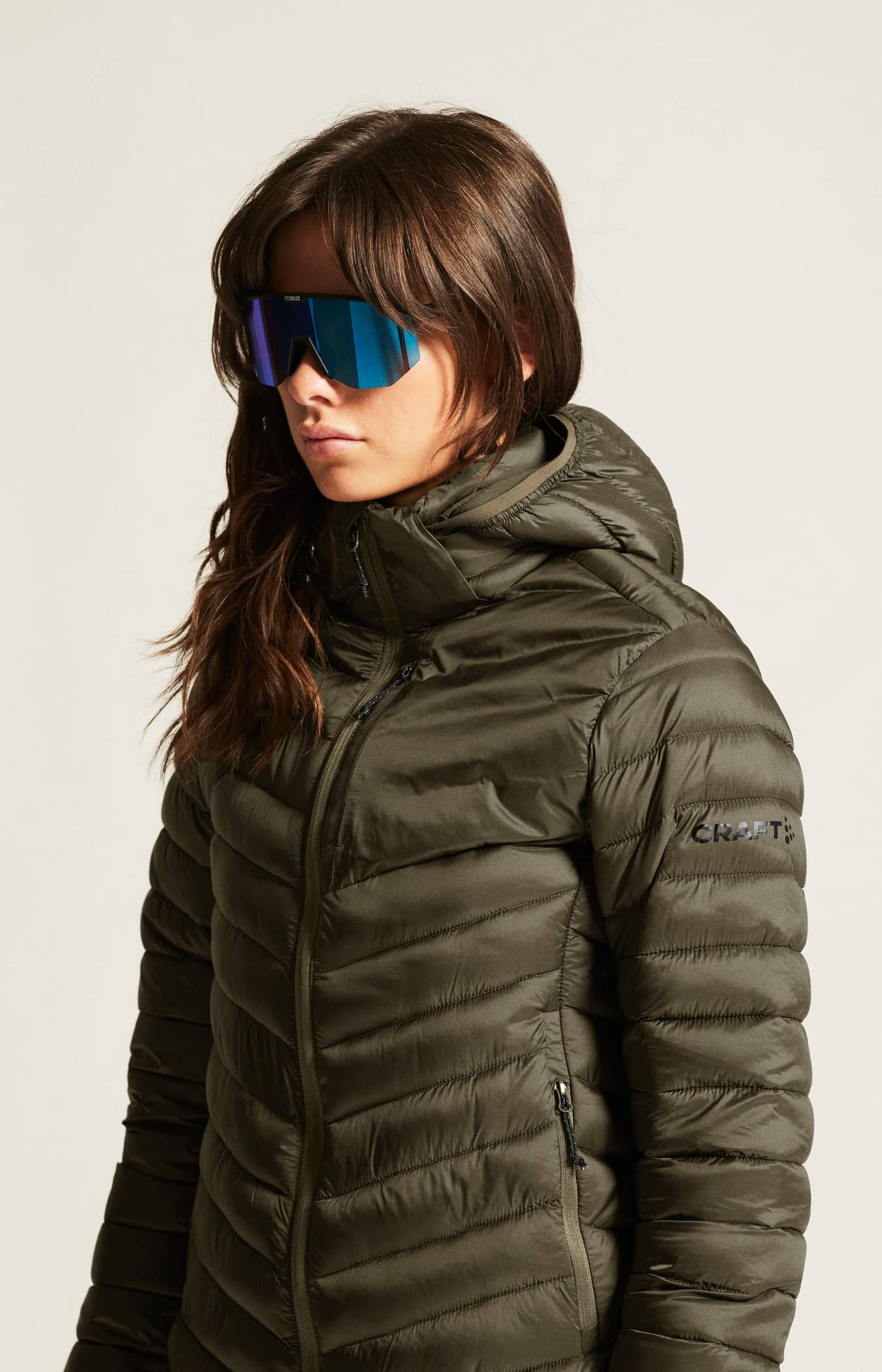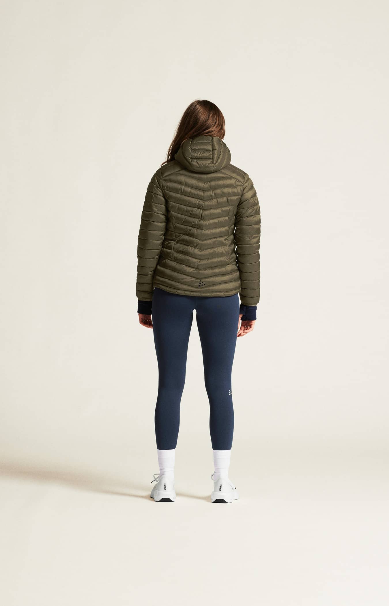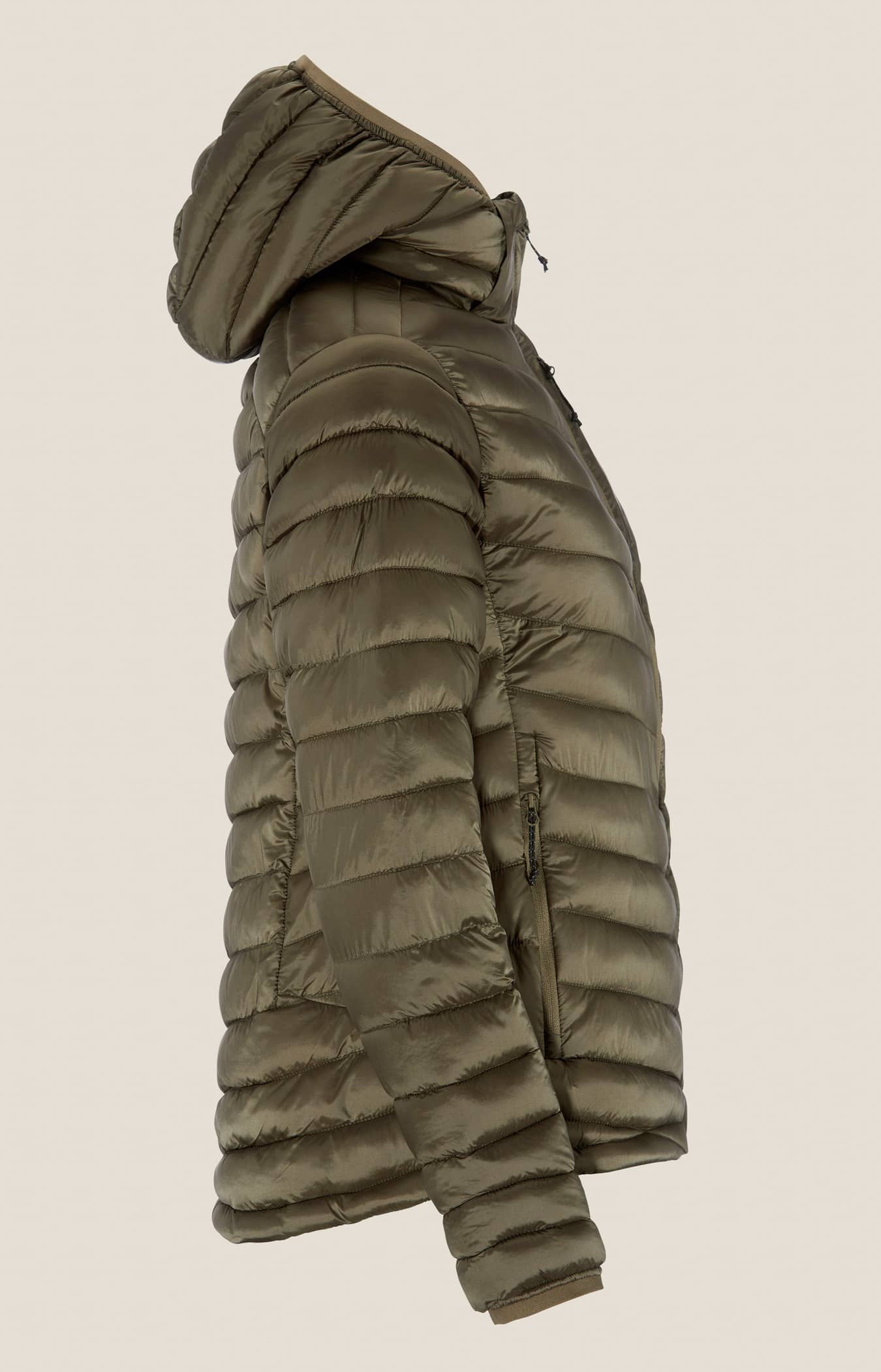 • Kviltad design i kropp, ärmar och huva