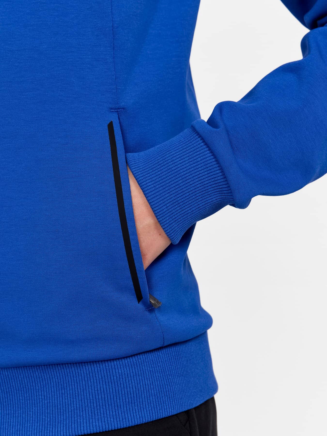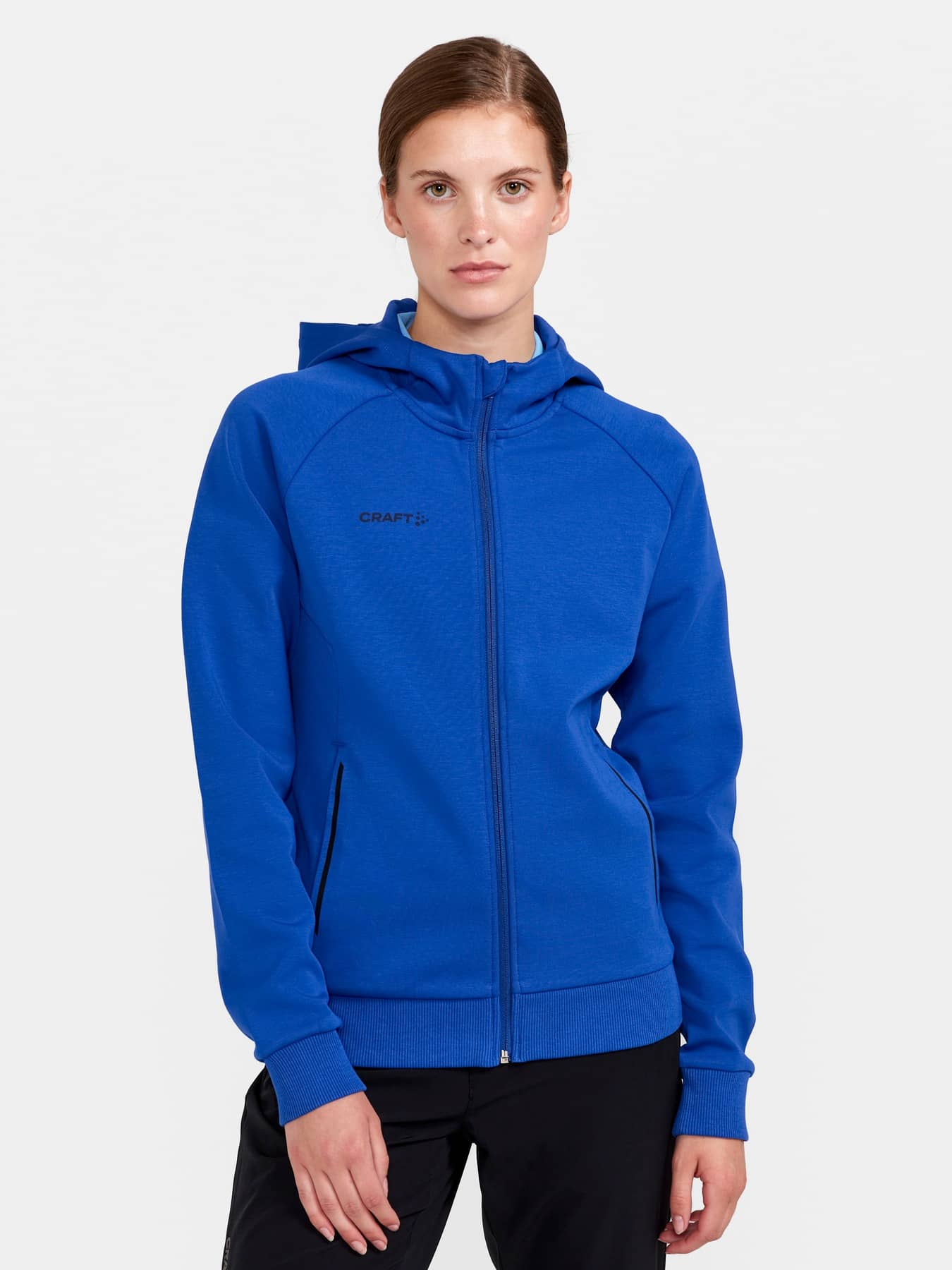 Stilren huvjacka för vardagsbruk gjord i ett mjukt och funktionellt material av bomull och polyester. Plagget har två fickor med dragkedja, logo på bröst och rygg samt dragkedjor för ett modernt uttryck.