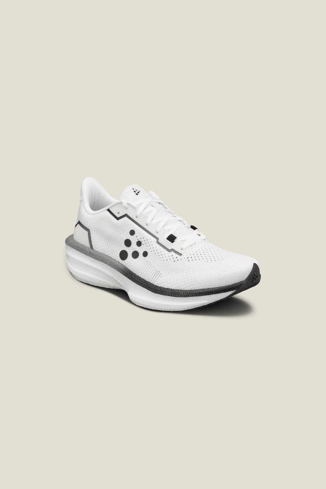 Den senaste versionen av den populära Endurance-modellen har uppgraderats med ännu effektivare ventilation och förbättrad stabilitet, vilket gör den till en optimal allroundsko för löpning i varierande terräng och skiftande förhållanden. Denna högpresterande distanssko passar många typer av löpare och ger hög komfort även under riktigt långa löprundor. Endurance 3 är en tekniskt avancerade löparsko med en mellansula av Px Foam™ som ger explosivt frånskjut och mjuk landning. Ovandelen i högfunktionell, ventilerande och elastisk mesh ger en tight och flexibel passform för optimal komfort och ett effektivt löpsteg. Skon har även en slimmad, aerodynamisk design som hjälper dig att höja tempot och nå dina mål snabbare. Endurance 3 är det optimala valet för elitidrottare och motionärer som söker en väldämpad premiumsko för såväl mängdträning som hårda intervallpass. Byggd för asfalt och lättare trail-terräng. Px Foam™ Px Foam™ är ett ultralätt material som används i mellansulan för optimal responsiv stötdämpning och bra flexibilitet. Materialet framställs i en giftfri process och innehåller inga tillsatser av kemiska tvärbindningsmedel. Materialet är dessutom 100% återvinningsbart. Detta innovativa material har låg densitet och är 20% lättare än traditionell EVA. Den låga vikten i kombination med responsiv stötdämpning gör Px Foam™ till ett perfekt val för intensiv löpning under lång tid. Craft Endurance Fit® Craft Endurance Fit® innefattar en smal hälkappa, en tight "lock-in"-passform över mellanfoten och en rymlig framfot. Den smala hälkappan ser till att foten inte glider i skon, vilket ger stabilitet i alla typer av terräng, medan den tighta och omslutande passformen över mellanfoten ger trygghet i varje steg. Samtidigt möjliggör den rymliga framfoten en naturlig tå- och mellanfotsrörelse, vilket ytterligare ökar komforten. • Ovandel i högfunktionell mesh med effektiv ventilation och bra stretch • Px Foam™ mellansula: följsam och högresponsiv • Ergonomiskt formad konstruktion för minskad vikt och hög komfort • Yttersula som ger bra grepp på asfalt och i lättare trail-terräng • Craft Endurance Fit® • Vikt: 265 gram i storlek UK8 • Häl 38 mm, framfot 29 mm inkl innersula • Drop 9 mm