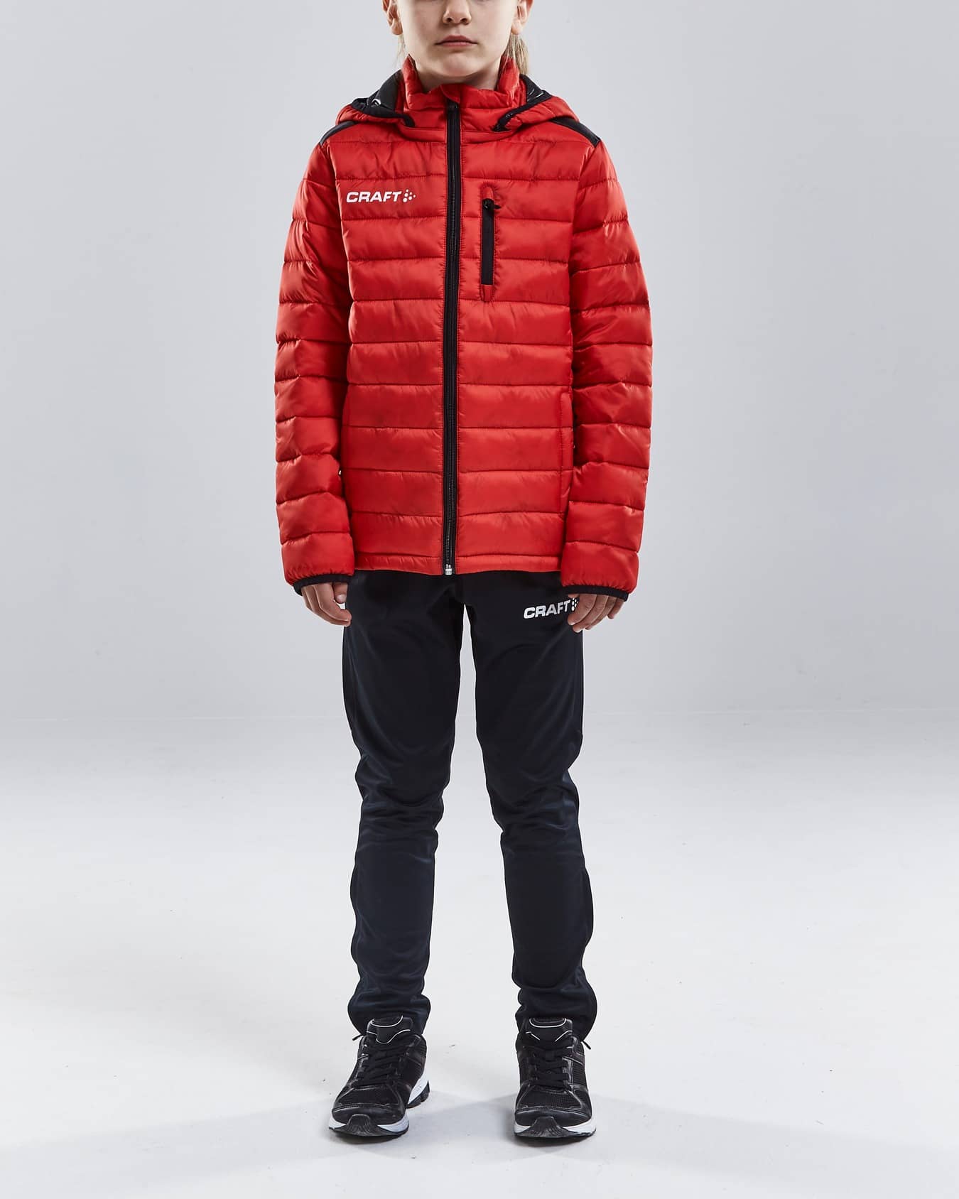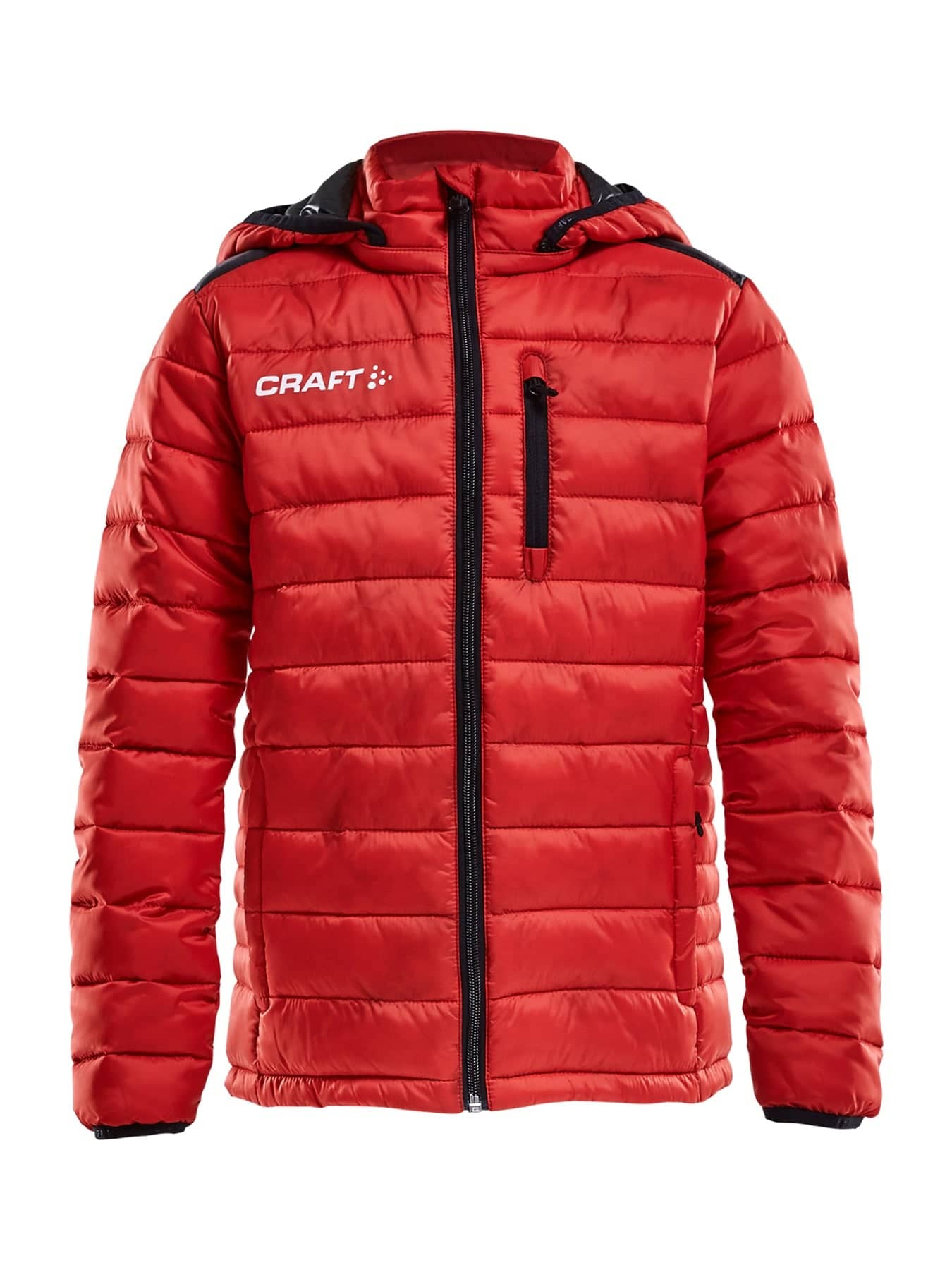 Vadderad, vind- och vattenavvisande jacka perfekt för uppvärmning eller som representationsjacka. Avtagbar huva och bröstficka med dragkedja. Vaddering i mikrofiber med bra värmeegenskaper. Passform anpassad för juniorer.
