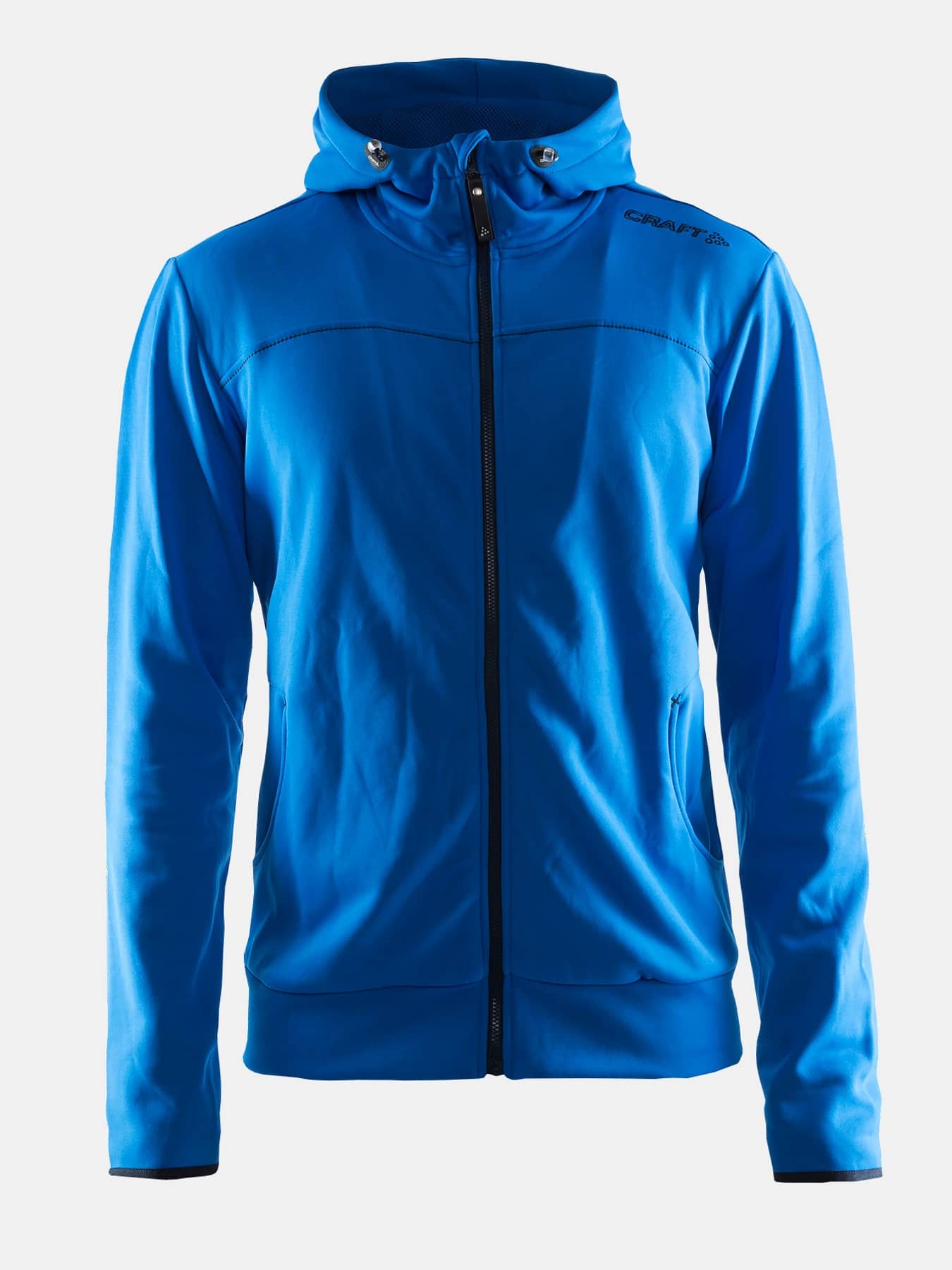 Skön huvjacka i mjuk, elastisk och funktionell polyester. Huva med dragsko, två fickor.