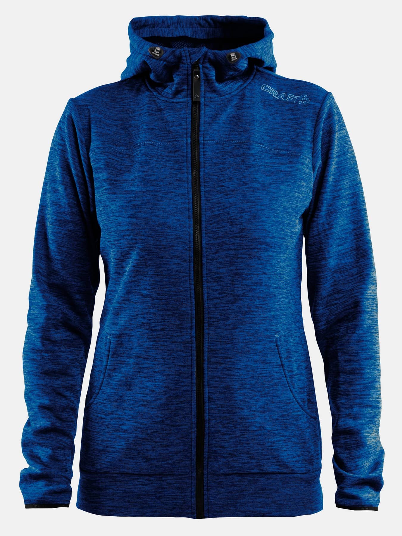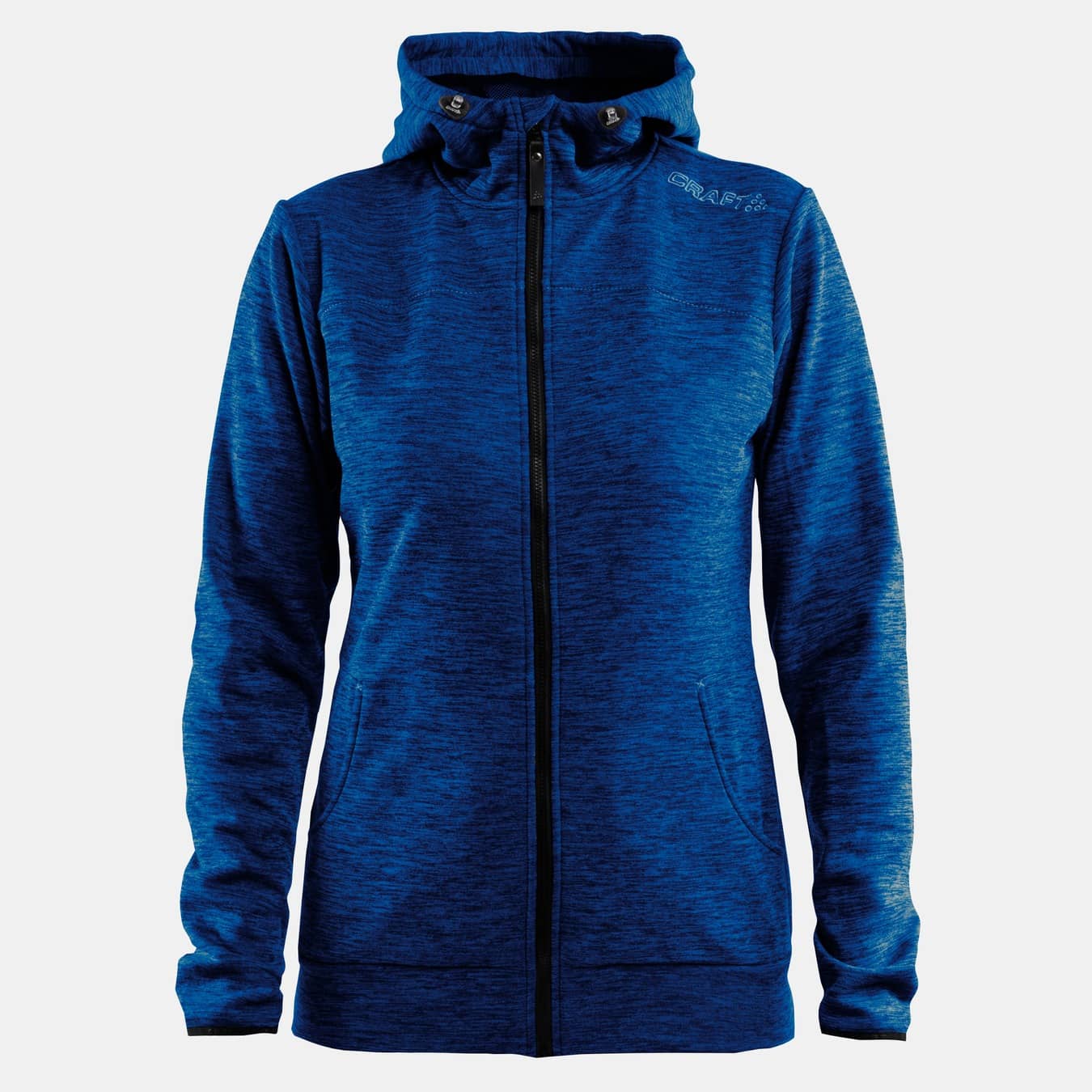 Skön huvjacka i mjuk, elastisk och funktionell polyester. Huva med dragsko, två fickor.