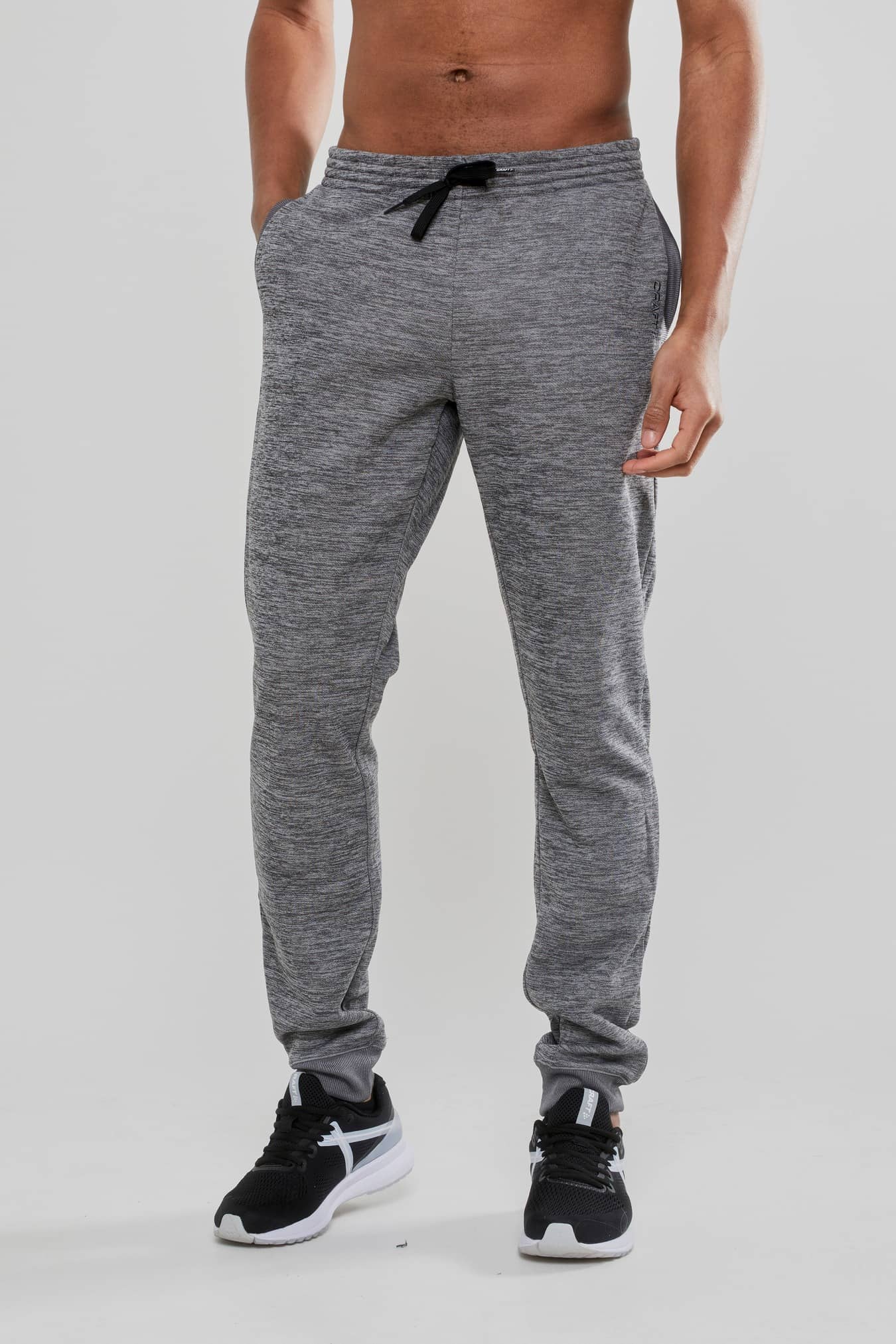 Mjuka och sköna svettisbyxor med avslappnad design för vardagsbruk. Byxorna är gjorda i funktionell polyester och utrustade med två sidfickor, resår med dragsko i midjan, brodyr vid vänster ficka och mudd i benslut.