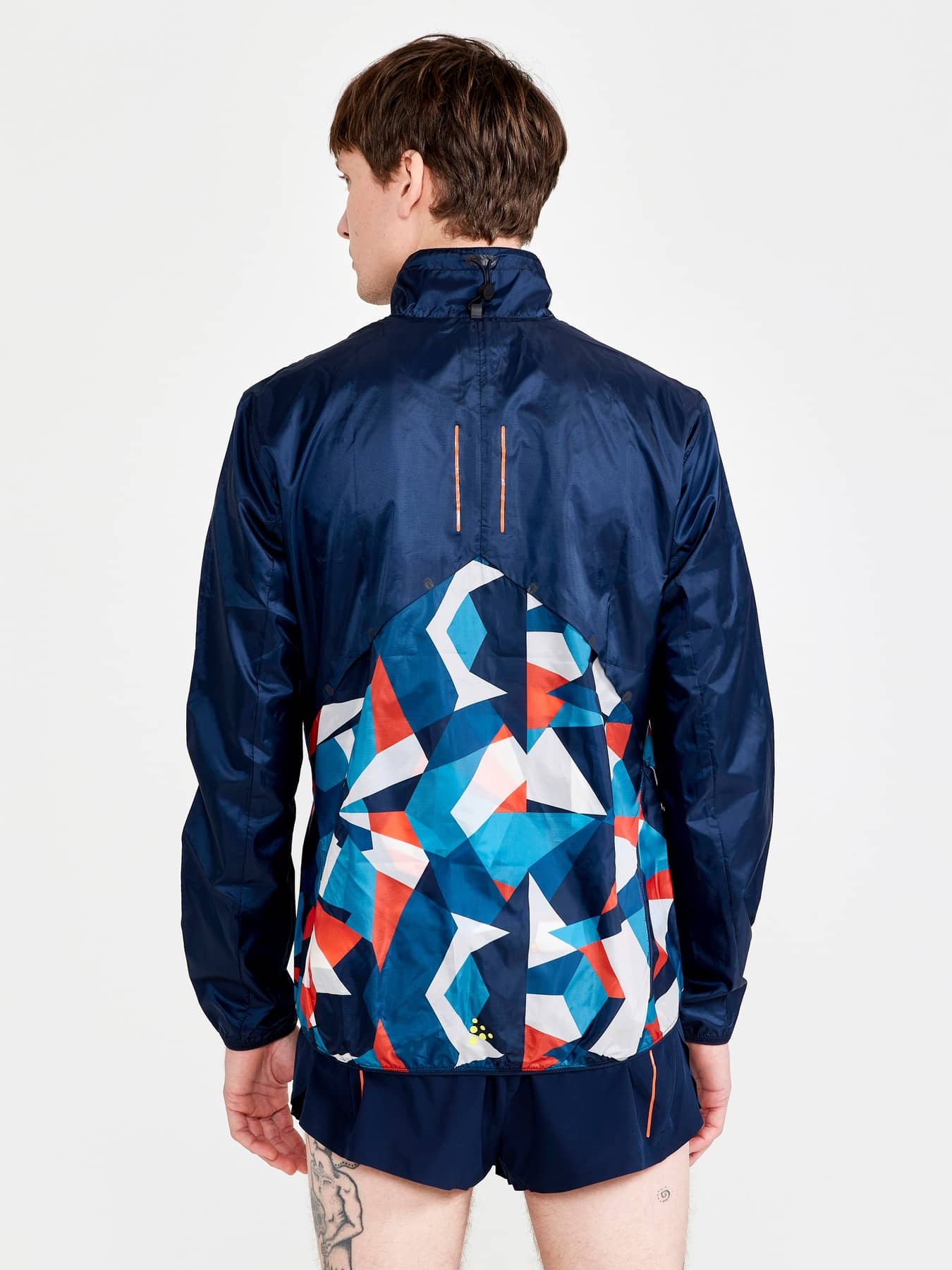 Highly ventilating pro-grade running jacket made of super-soft and lightweight ripstop fabric for high-intensity workouts. Mesh at sides for extra breathability, ventilation at back yoke and zip ventilation at upper front. Packable into its own zip pocket.