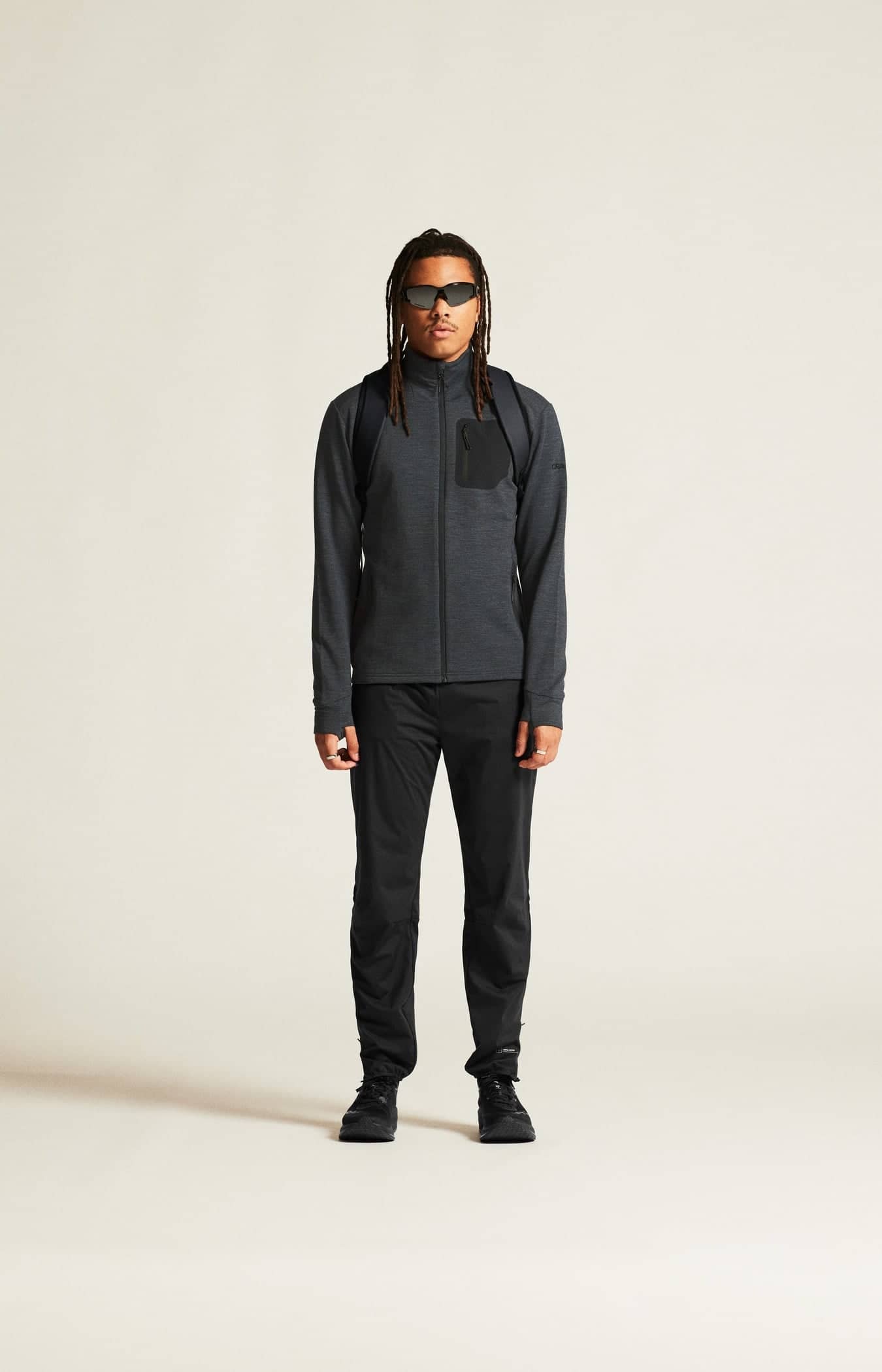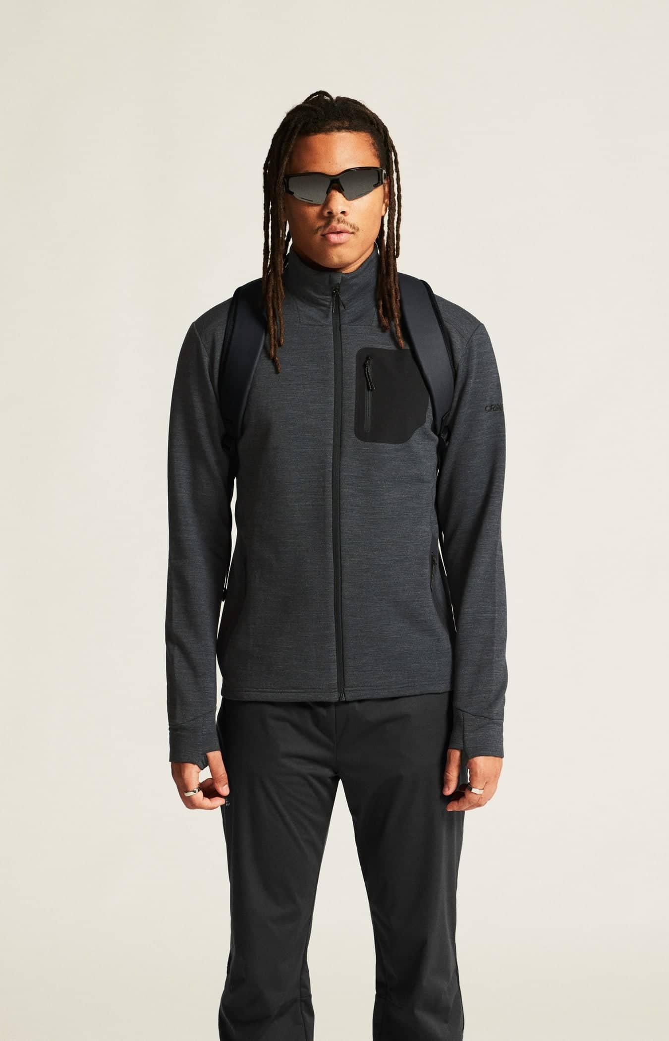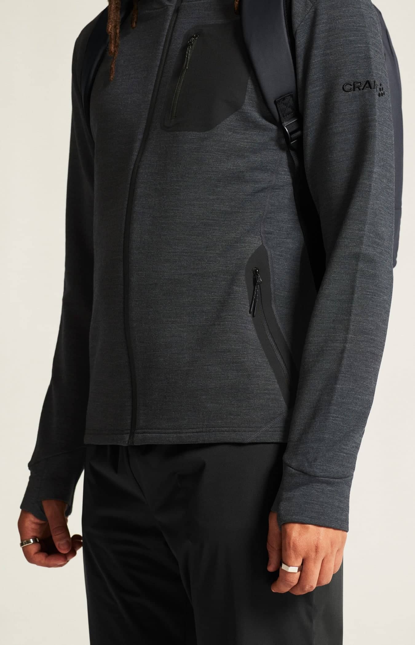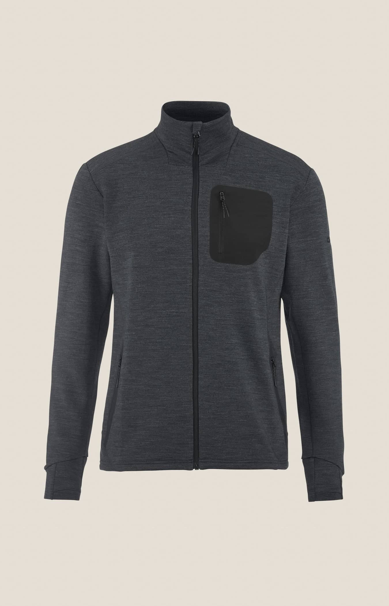 Plagget är gjort i ett mjukt, värmande och slitstarkt material av ull och återvunnen polyester som ger effektiv reglering av kroppstemperaturen och bra rörelsefrihet. Jackan har även tumhål i ärmslutet och två sidfickor med dragkedja. Kan bäras som ett ytterlager i mildare väder eller som en del av ett lager-på-lager-system i kallare förhållanden.