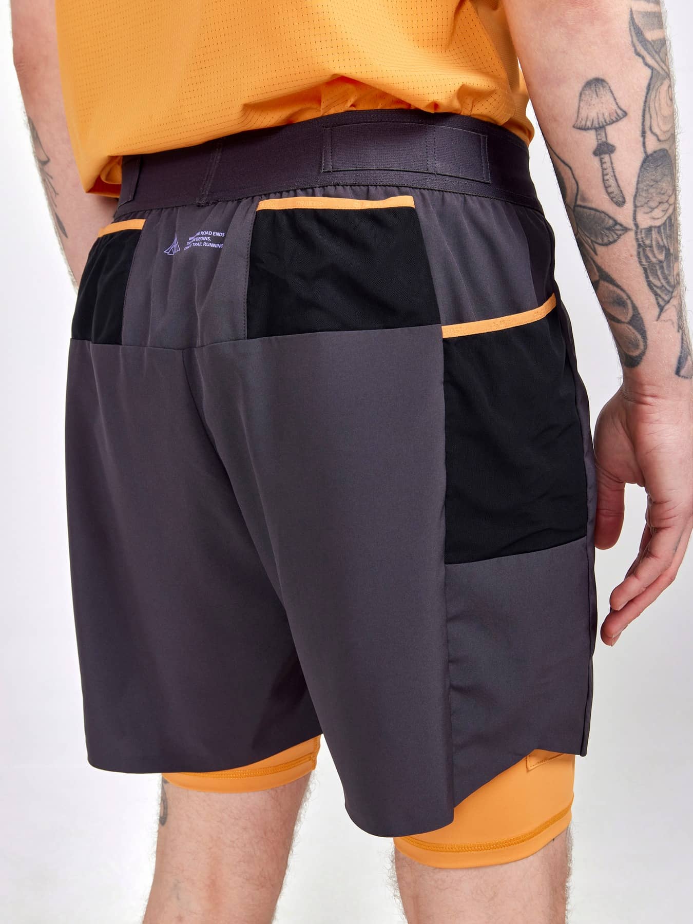 Shortsen har ett yttermaterial med 4-vägs stretch gjort av återvunnen polyester och innertights i funktionell polyamidtrikå med effektiv pullback. Plagget har även flera fickor för mobiltelefon, energibars, gel etc.