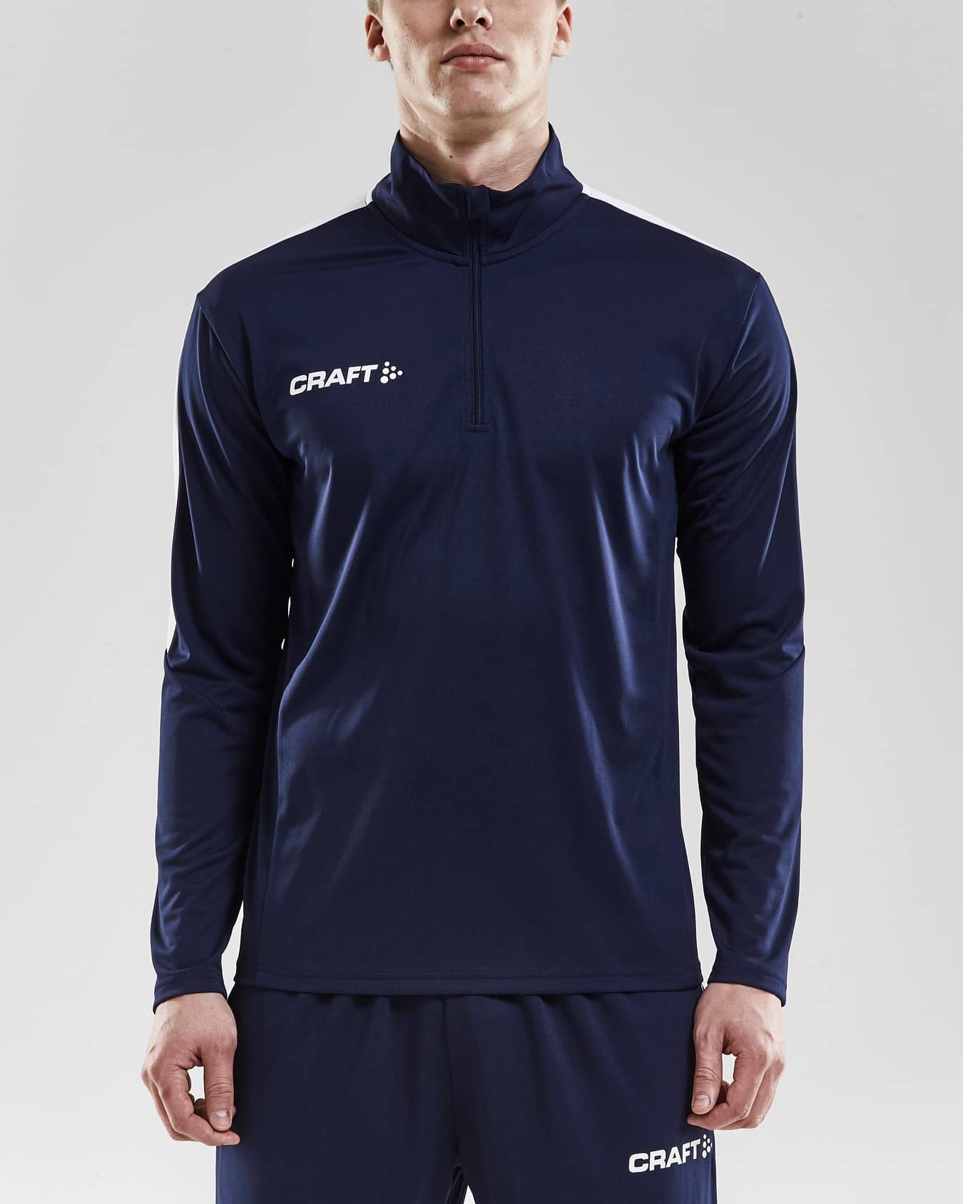 Mjuk och skön tränings- och uppvärmningströja i funktionsmaterial för optimal fukttransport. Kort dragkedja i halsen för snabb och enkel reglering av ventilationen