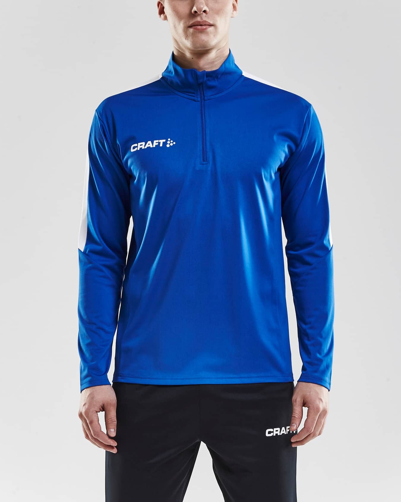 Mjuk och skön tränings- och uppvärmningströja i funktionsmaterial för optimal fukttransport. Kort dragkedja i halsen för snabb och enkel reglering av ventilationen