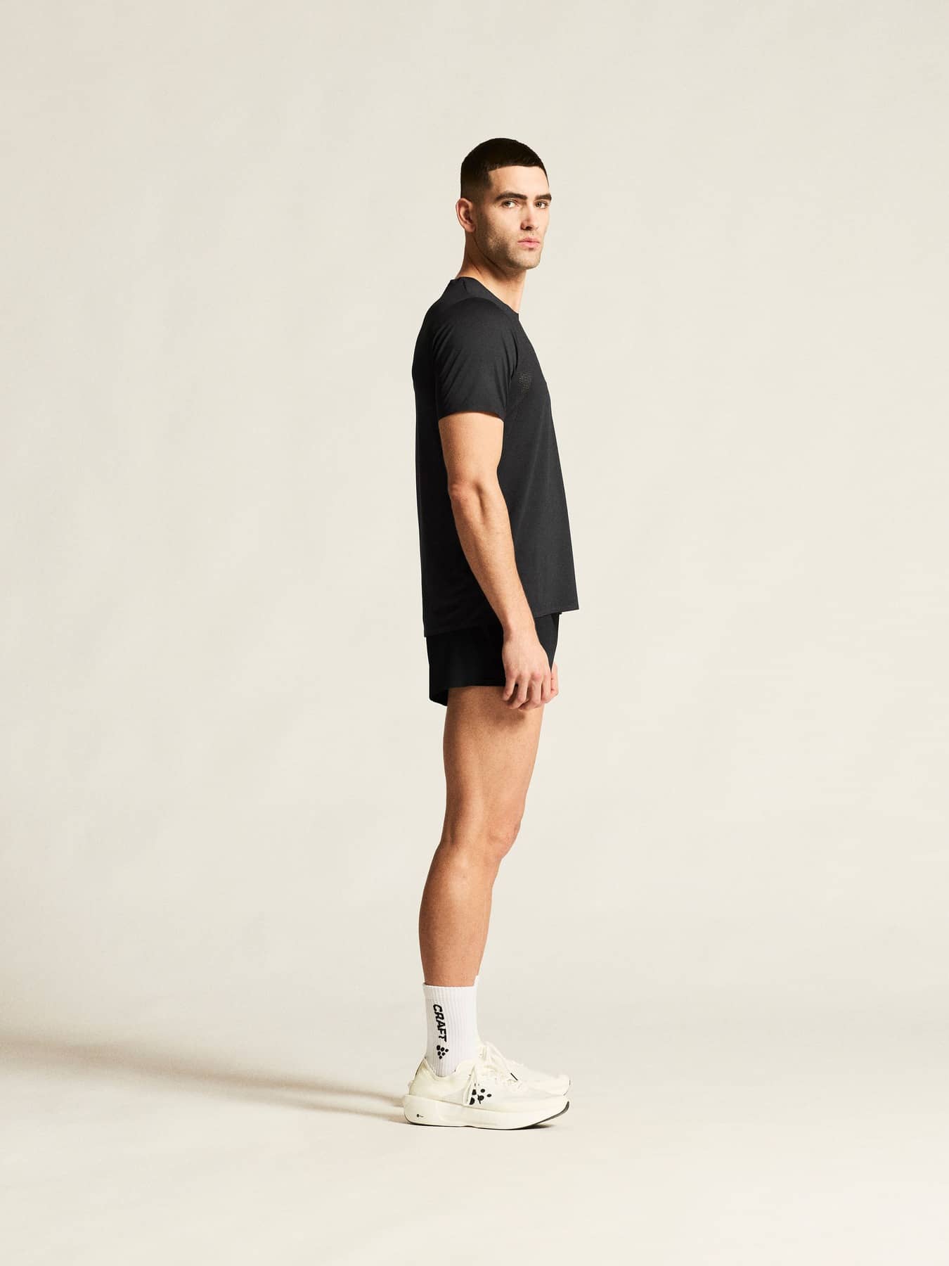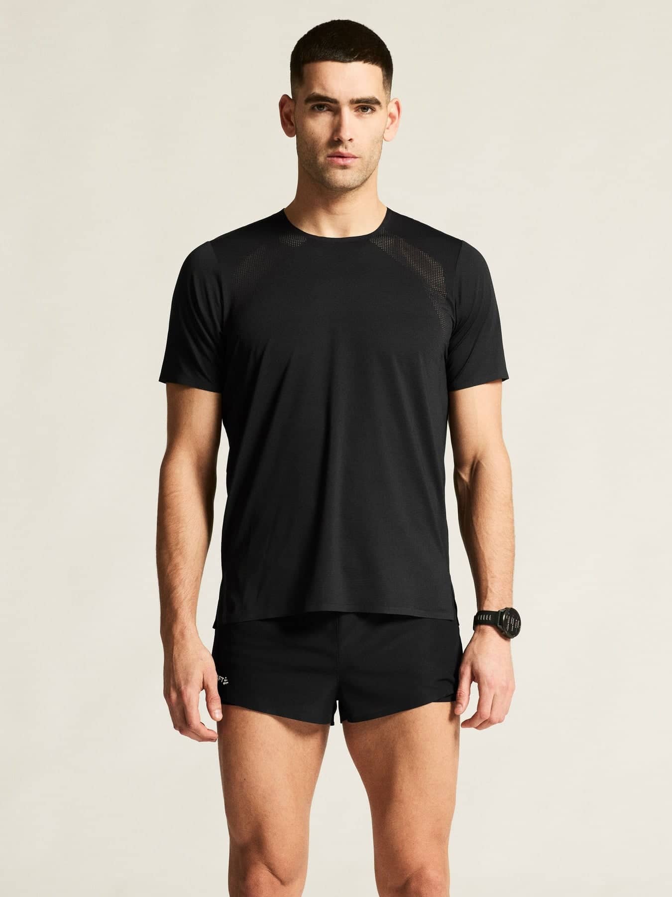 Denna tunna och lätta t-shirt är sydd högfunktionell trikå och utrustad med strategiskt placerade perforeringar. Resultatet är ett plagg som ger effektiv fukttransport och exceptionell temperaturreglering även vid högintensiv löpning. T-shirten har dessutom tejpade avslut i halsen, ärmslut och nedtill för att minimera skav och ge optimal komfort – så att du kan fokusera fullt ut på rytm och löpsteg. Den ultimata partnern för elitlöpare som siktar på att vinna världens tuffaste maratonlopp.