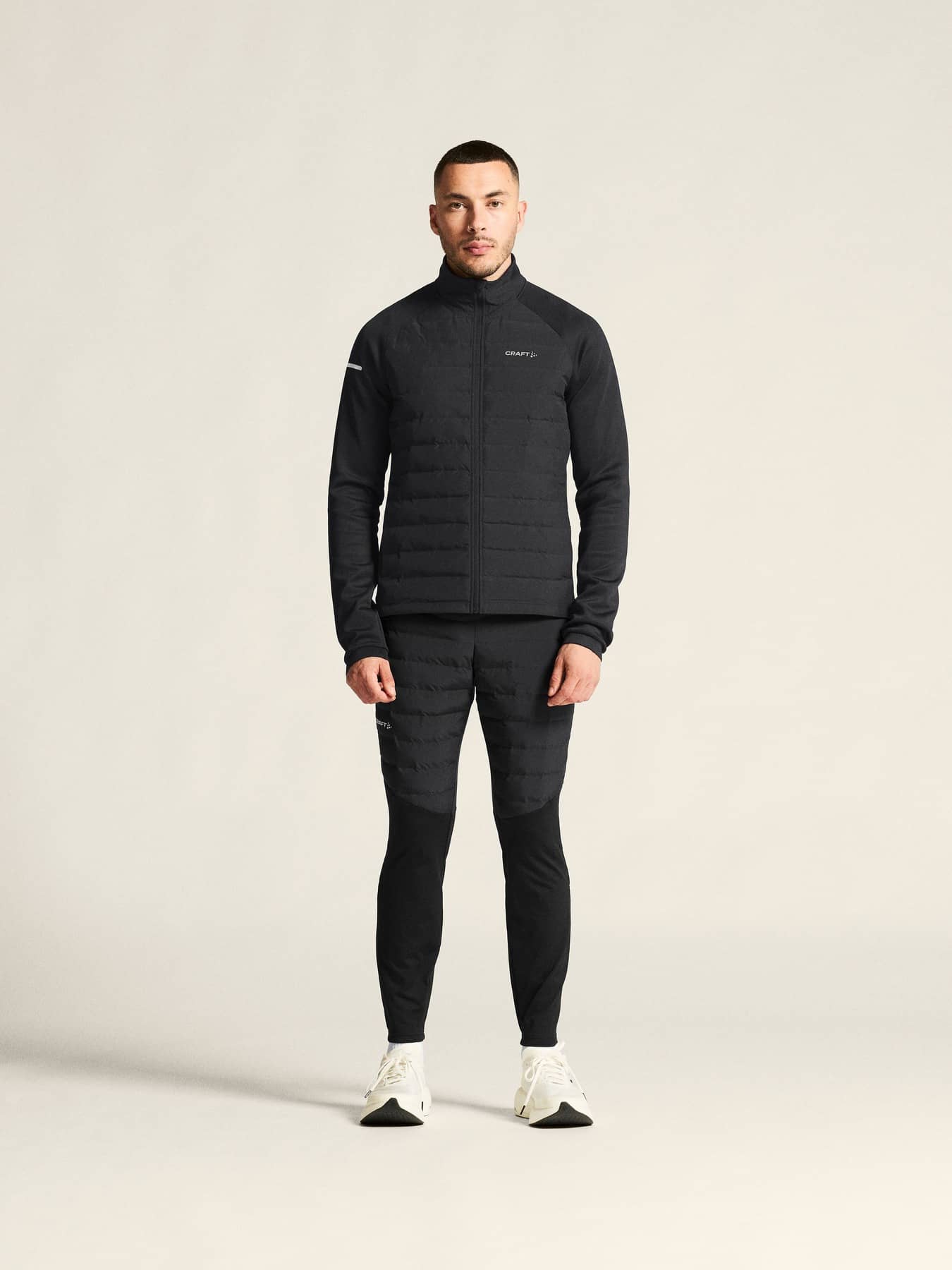 Dessa tekniskt avancerade träningstights har en 3-lagers konstruktion på framsidan med vindavvisande yttermaterial och tunn vaddering. Borstad trikå av återvunnen polyester och elastan upptill fram, upptill bak och i benens nedre del ger värme och komfort.