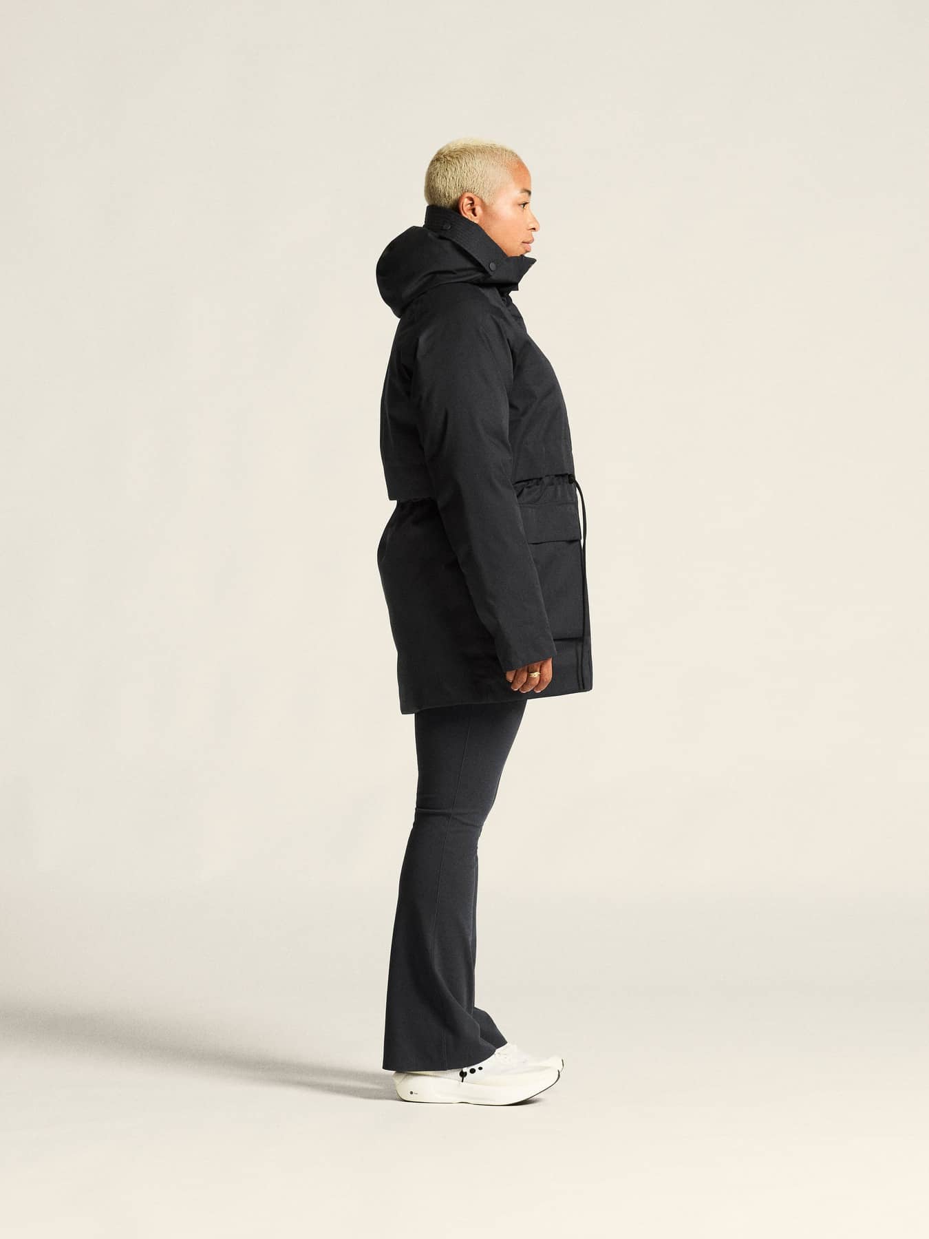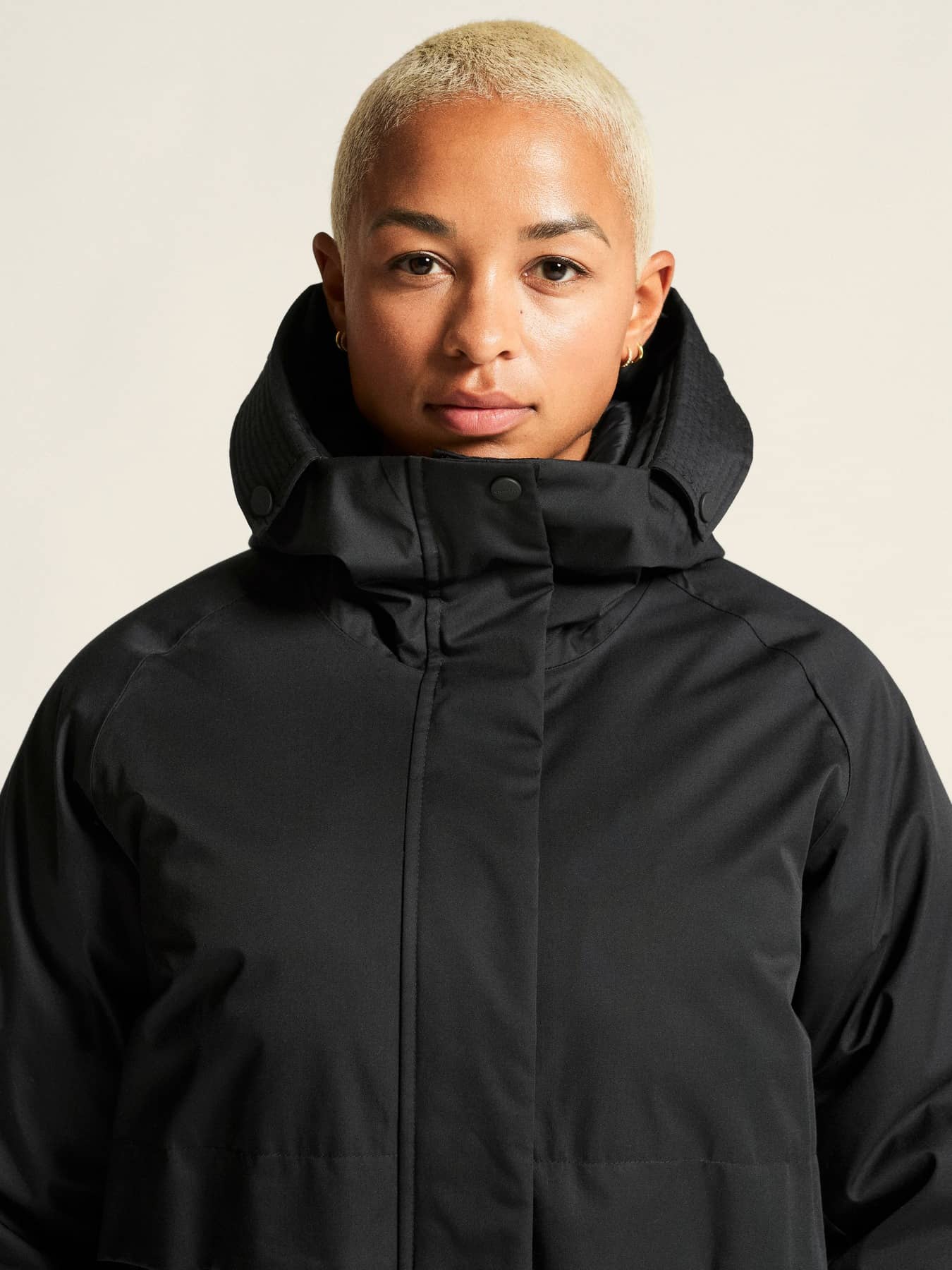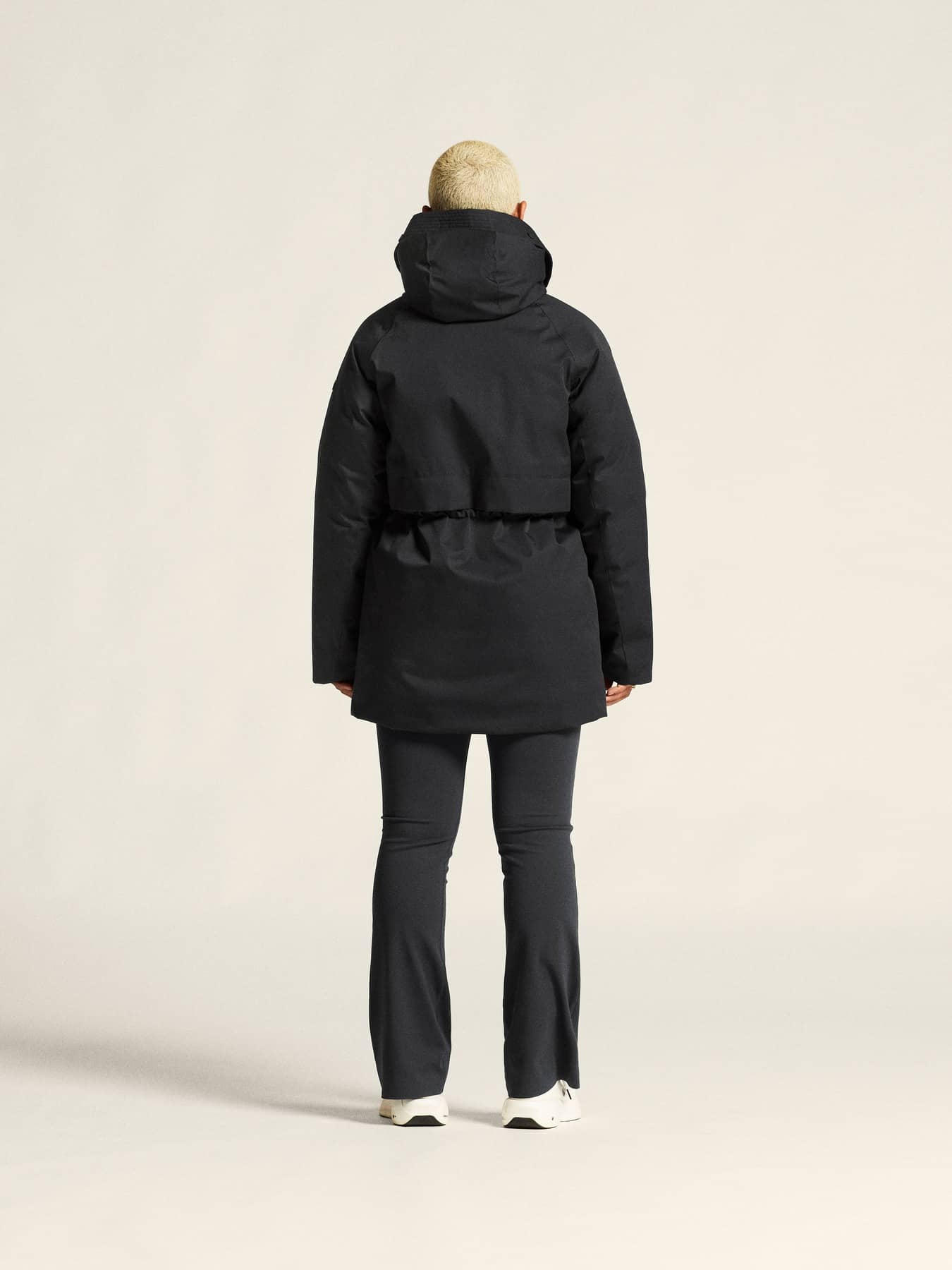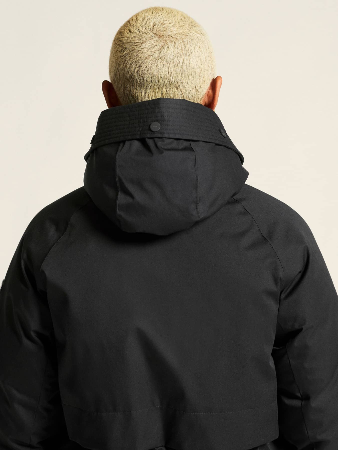 • Huva med justerbar dragsko för optimal passform