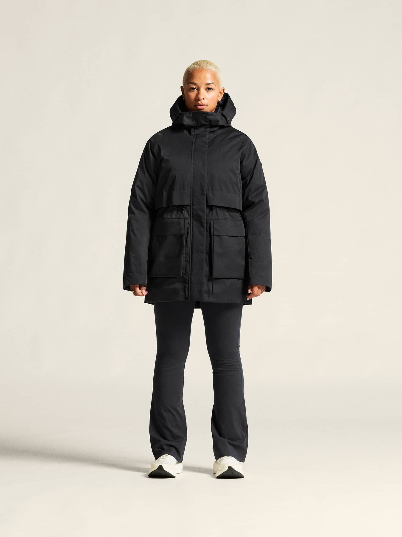 Denna stilrena parkas kombinerar en minimalistisk design med ett vattenavvisande yttertyg och ett värmeisolerande polyesterfoder, vilket gör den till ett perfekt val för kalla höst- och vinterdagar. Parkasjackan har dessutom tejpade sömmar i utsatta områden, två rymliga framfickor samt justerbar huva och midja för optimal passform och siluett. Plaggets något längre konstruktion, som täcker höfterna, ger dessutom extra skydd mot väder och vind.